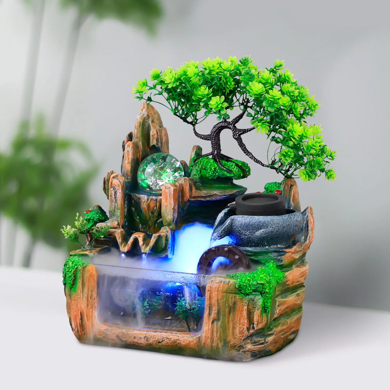 220V Resin Zimmerbrunnen Nebel Pflanzen Waterfall Desktop Brunnen Mit LED Lighting