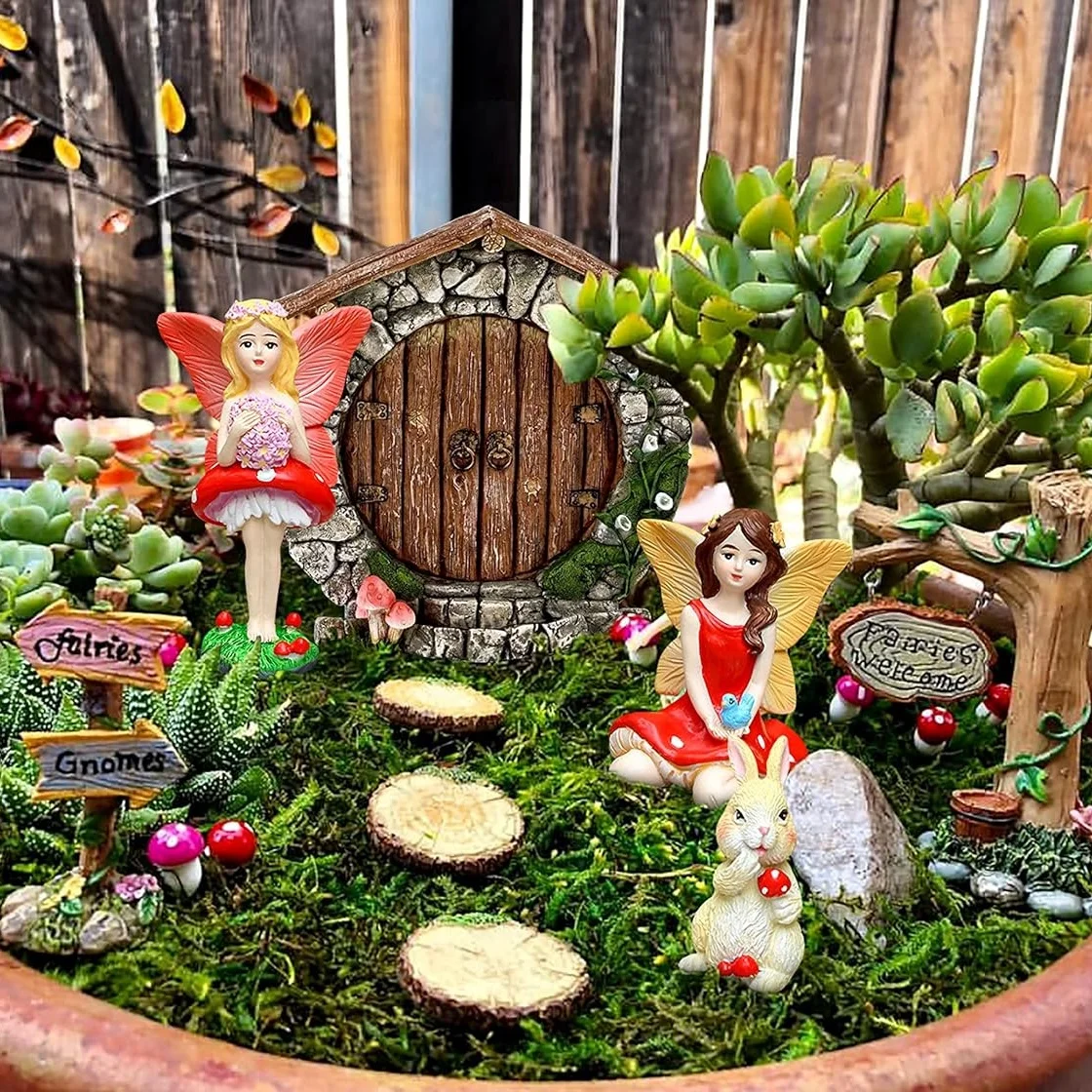 LaVenty Garden Fairy House Dekoration Outdoor Fairy House Tür Ornament Outdoor Miniatur Feen St...