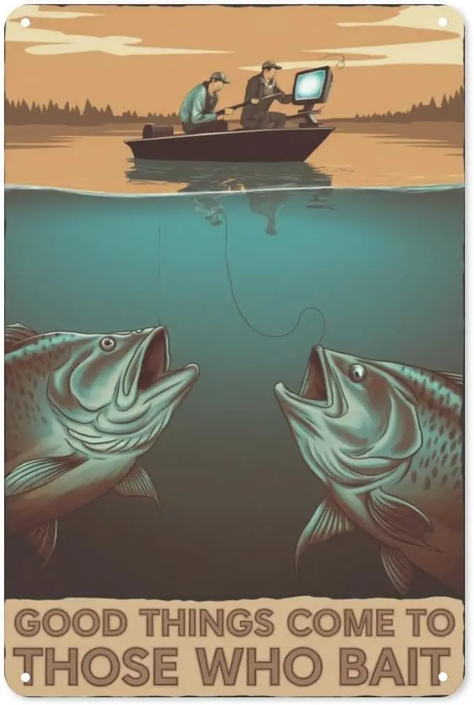 Y1, Angeln Retro Metallschild „Good Things Come to Baiters La...
