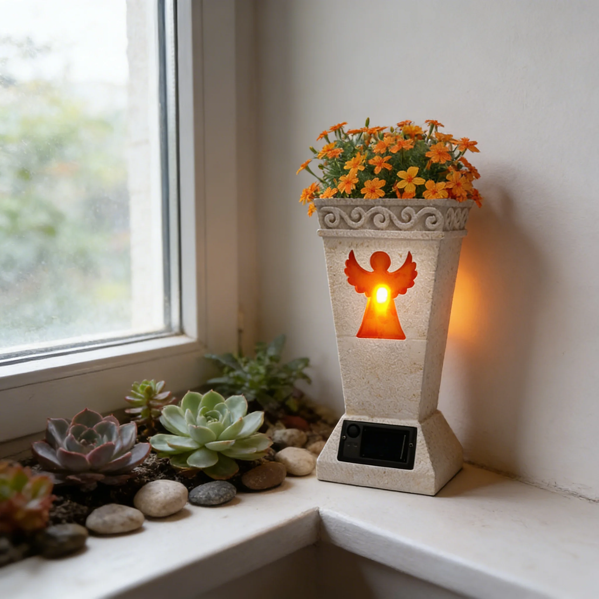 Solar-Engel-Laterne als Pflanzgefäß mit Orangefarbener S...