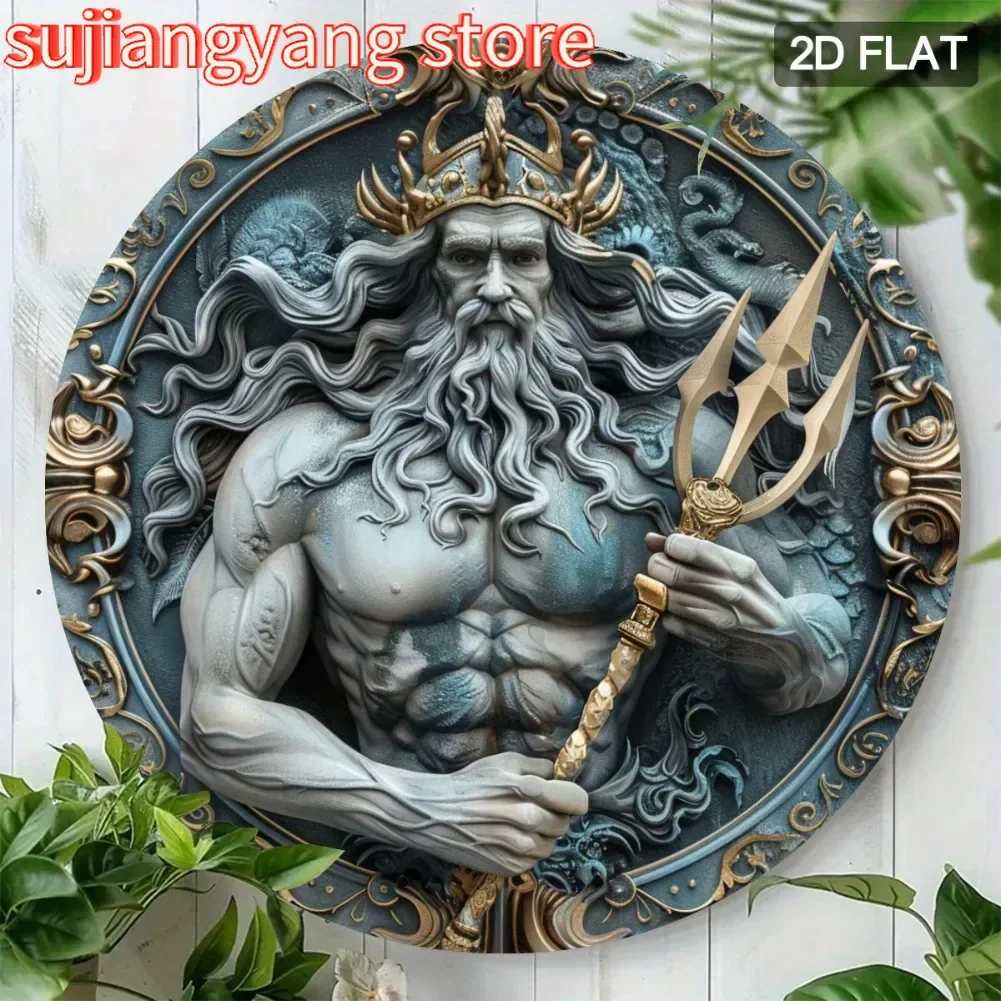 2D flach, 1 Stück 2D flache Poseidon-Statue, runde Metall-Wand...