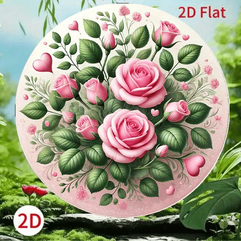 Raumdekoration, rosa Rosenstrauß, Liebesblumen-Cluster, Vintage, runde Metall-Wandkunst &ndash...