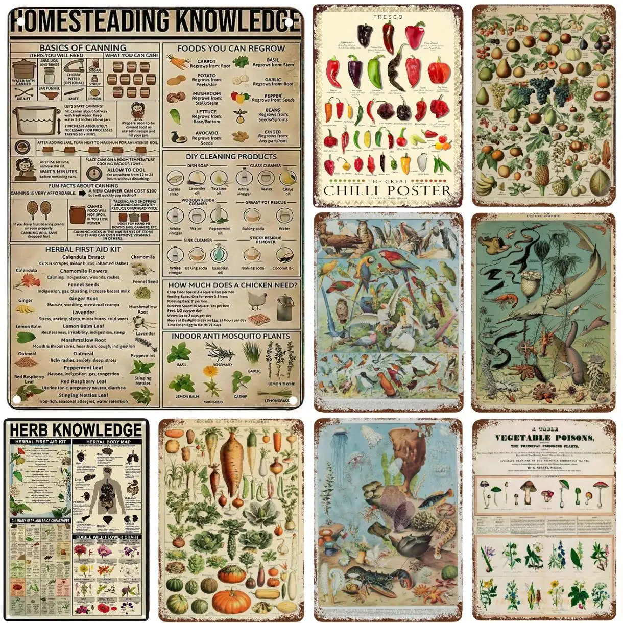 Vintage Pilz Medizin Blume Insekt Schmetterling Gemüse Kürbis Karotte Metall Aluminium Sch...