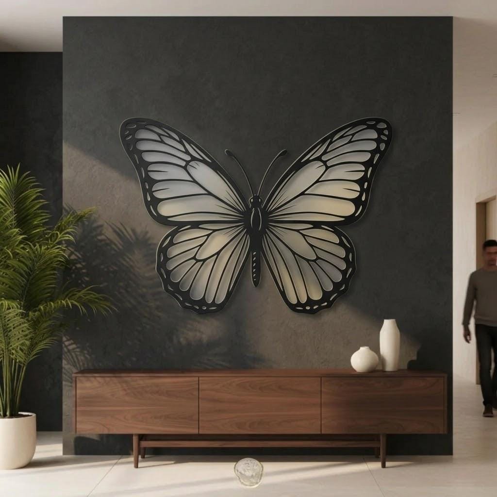 "Verleihe deinem Zuhause mit dieser atemberaubenden Schmetterlings-Metallwand einen Hauch von &...