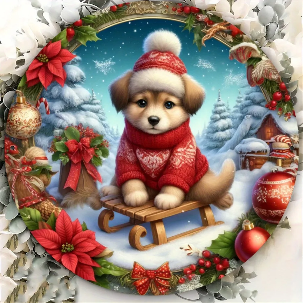 Weihnachts-Welpen-Wandkunst aus Metall, rundes Eisen-Schild, Dekor ...
