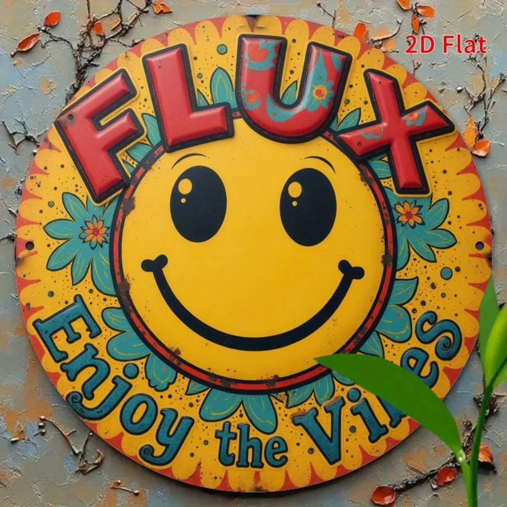 2D-Schild aus flachem, rundem Eisen – 2,5 cm, buntes, fröhliches Gesicht, Wirbelblumen-Wa...