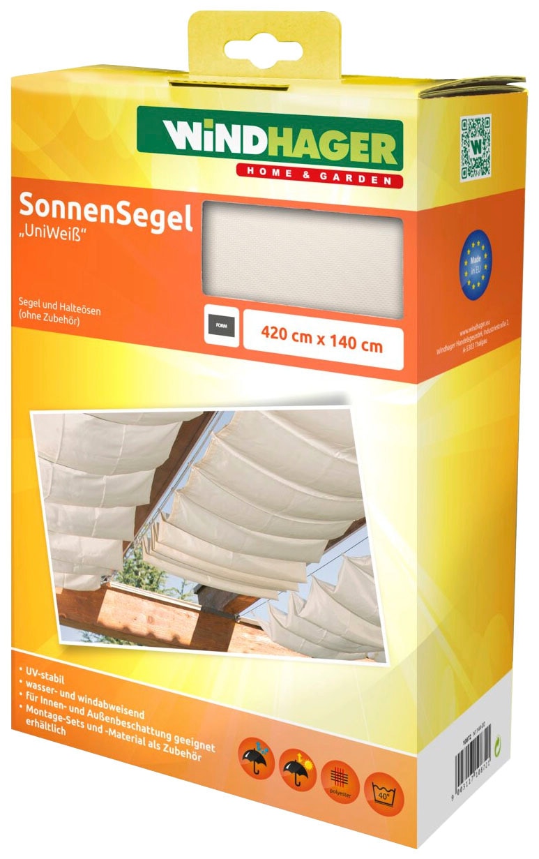 Sonnensegel WINDHAGER, weiß, B:420cm T:140cm, Polyester, Sonn...