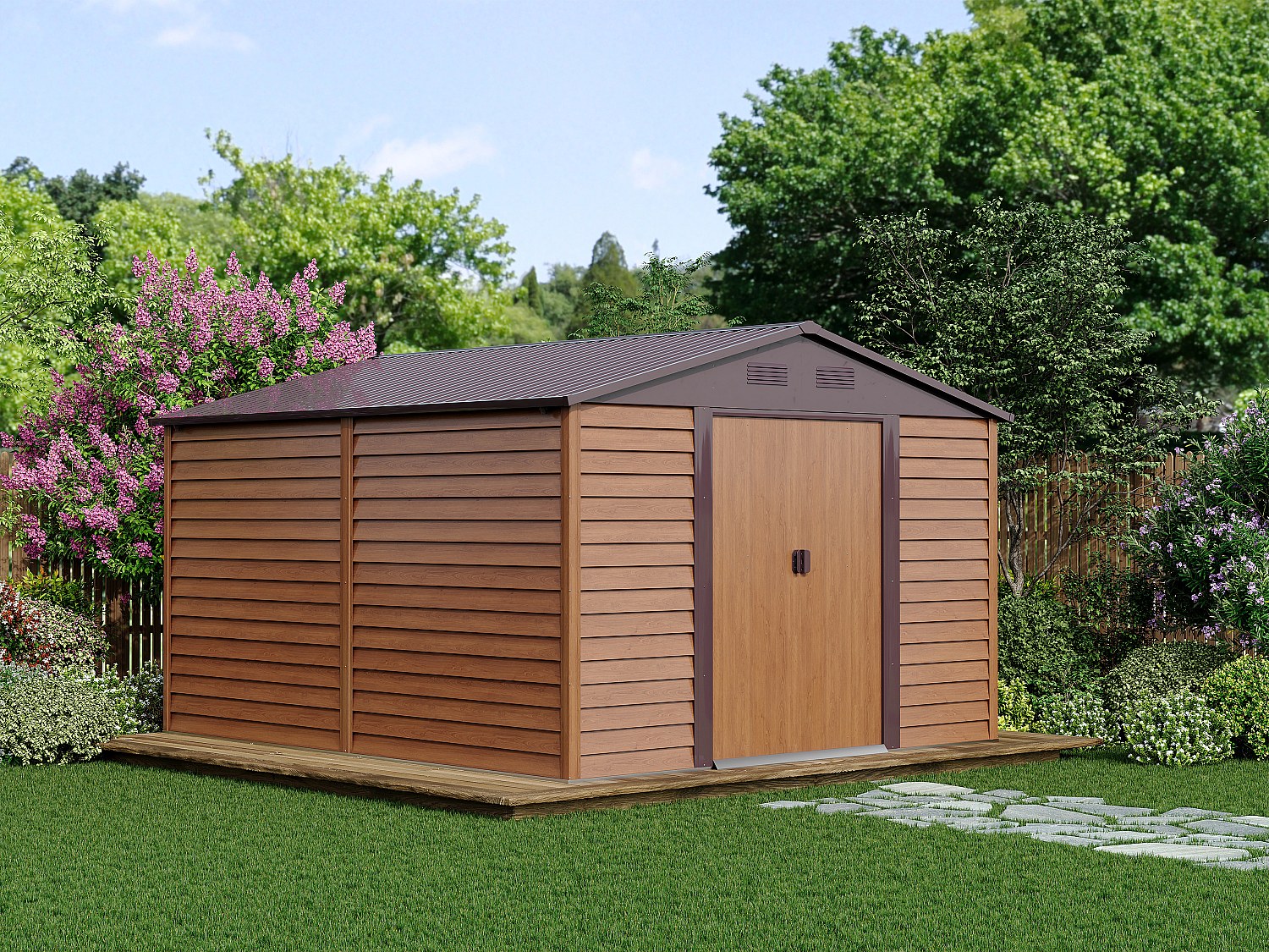 Gartenhaus aus Metall, verzinkter Stahl, Holzoptik - 11,75 m² ...