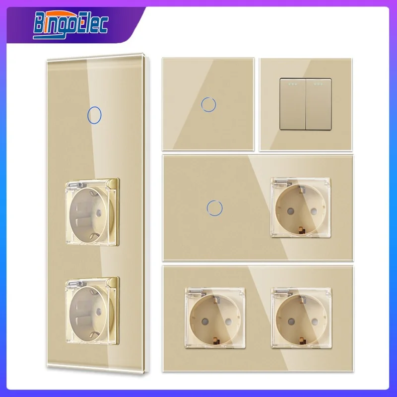 Bingoelec Steckdose Gold Licht Touch Schalter Wasserdichte Steckdose Mit Kristall Glas Panel fü...