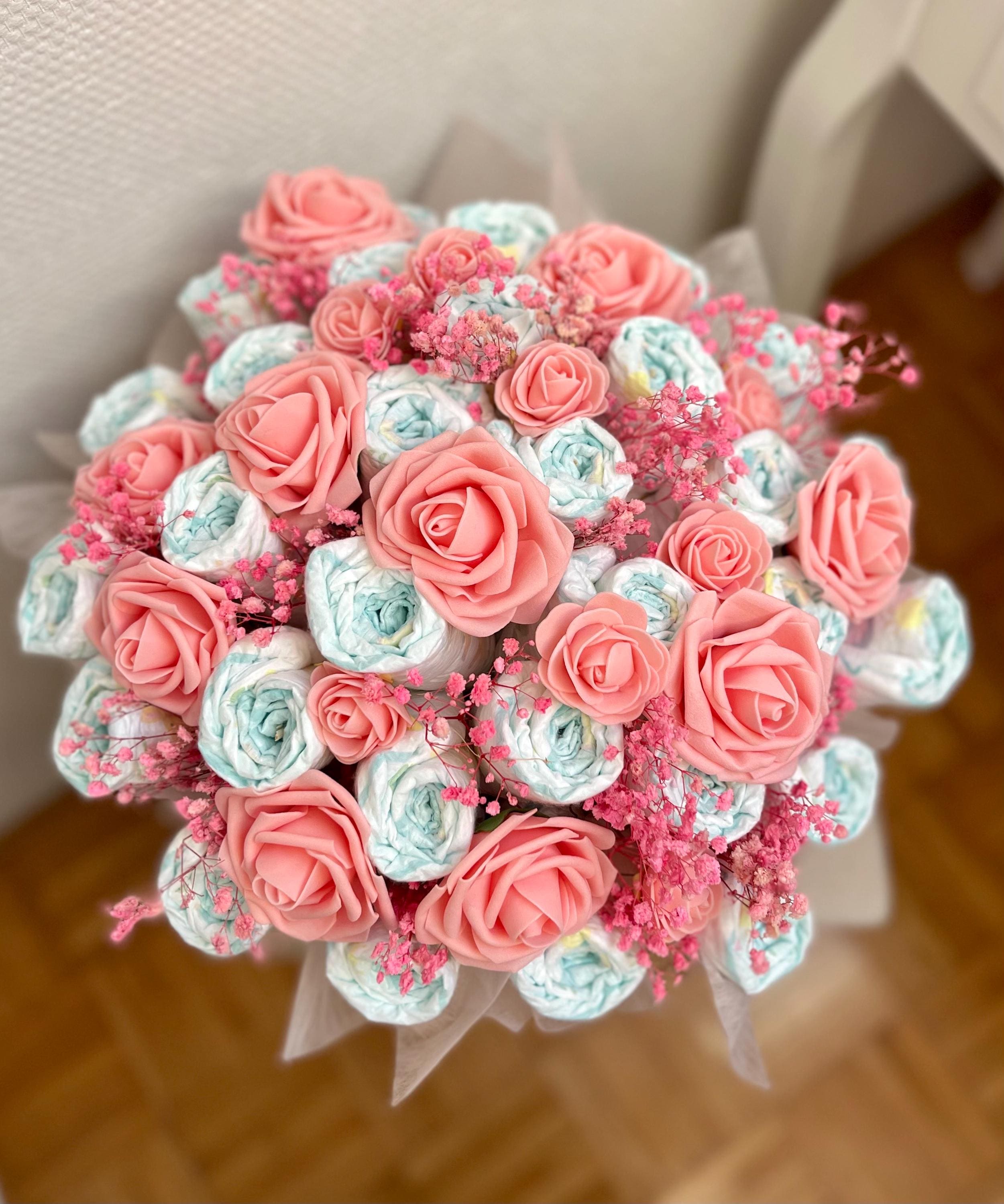 Mit meinen handgefertigten und liebevoll gestalteten Windelsträußen in rosa oder als neut...