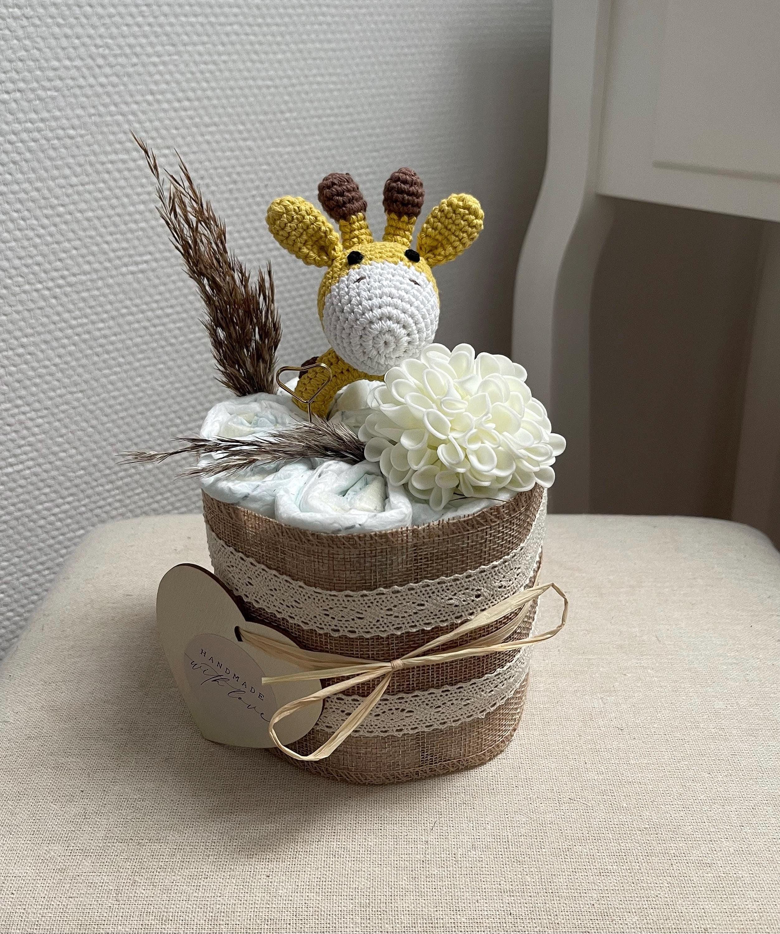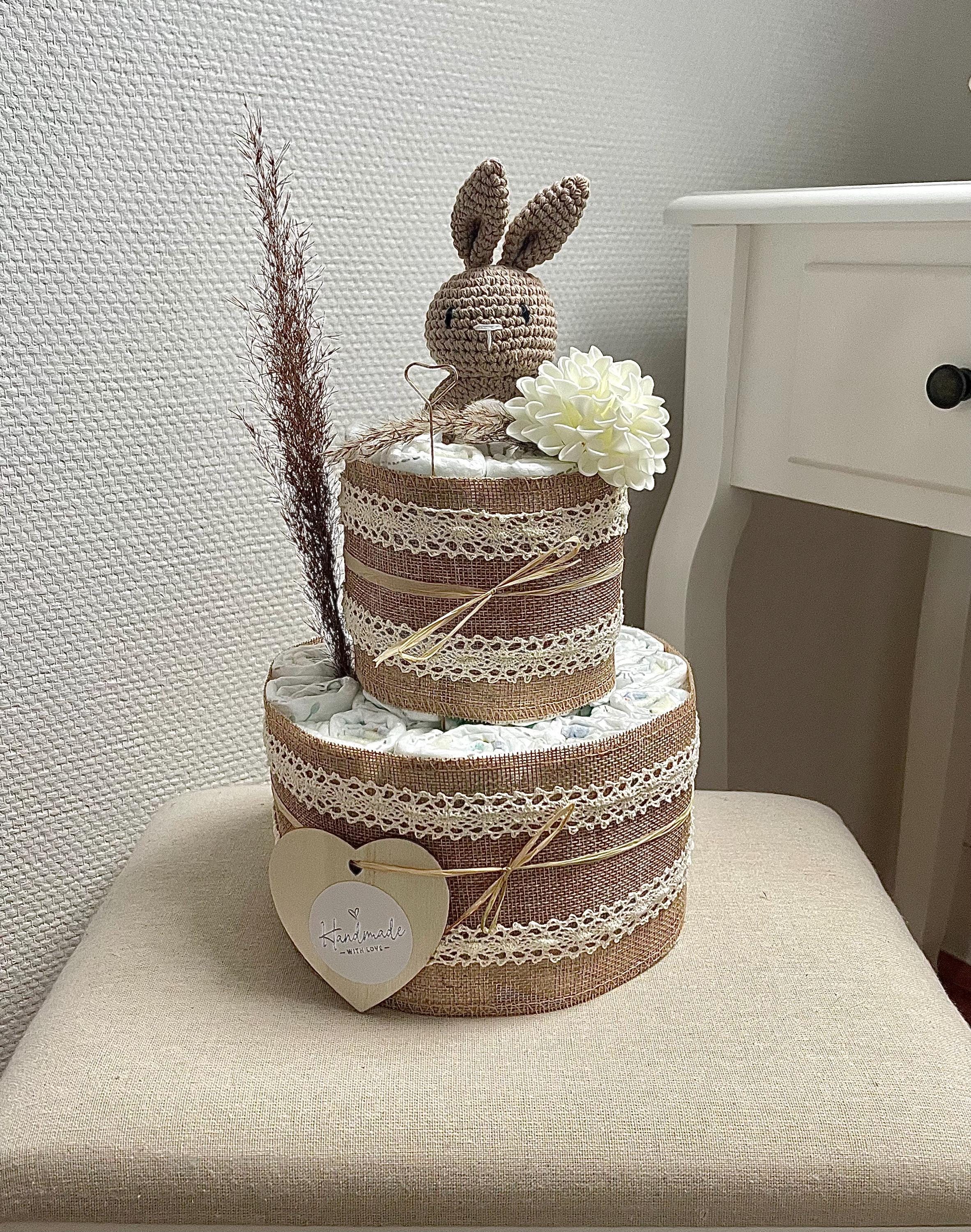 XXL Boho Windeltorte mit handgehäckeltem Greifring-Windeltorte...