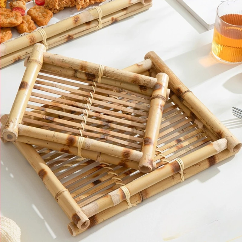 Bambus-Tablett, natürlich, handgefertigt, rechteckig, kreatives Bambus-Tablett, Brotteller, Zuh...