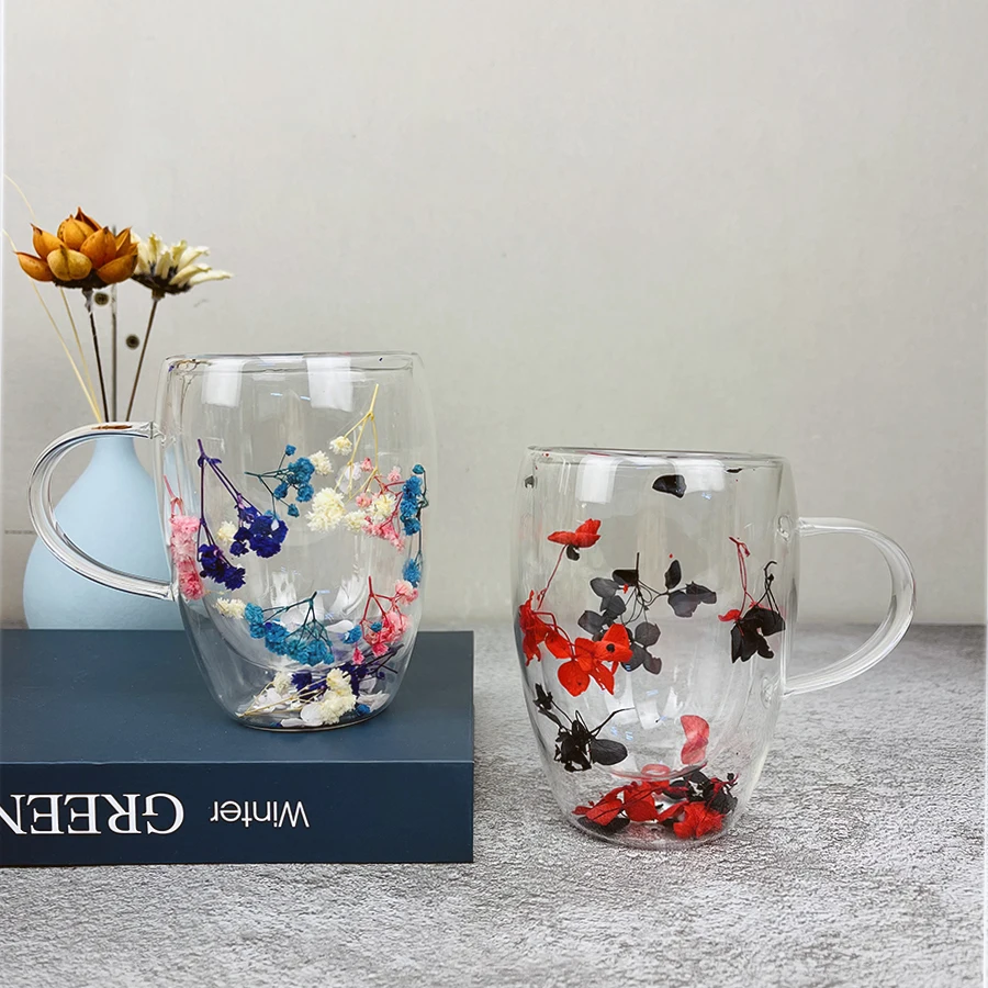 Kreative doppelwandige Glastasse, getrocknete Blumenfüller, Glastassen, Tee- und Kaffeetassen, ...