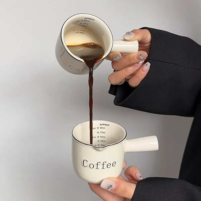 Hochästhetischer italienischer Espressotasse mit Skala. Hochwertiger, exquisiter Keramik-Kaffee...