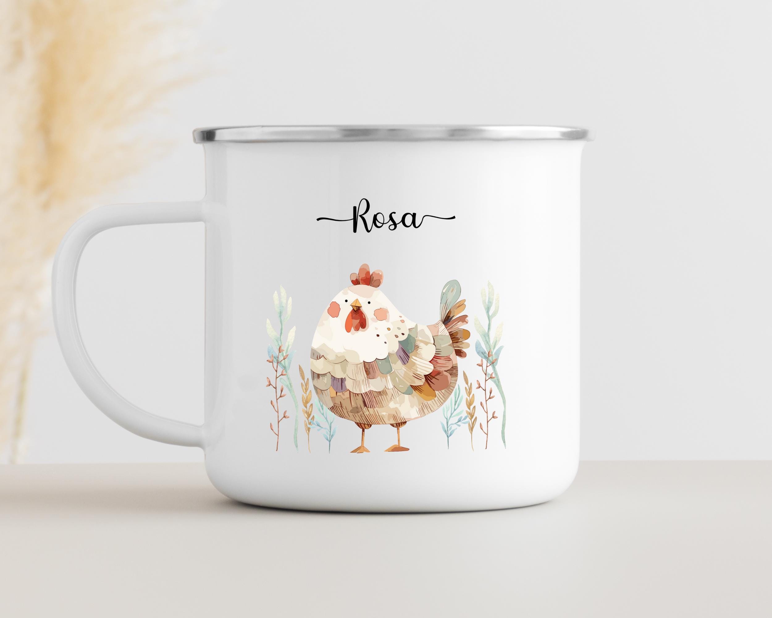 Huhn Kinder Tasse personalisiert, Emaille Tasse, Babygeschenke, Ema...