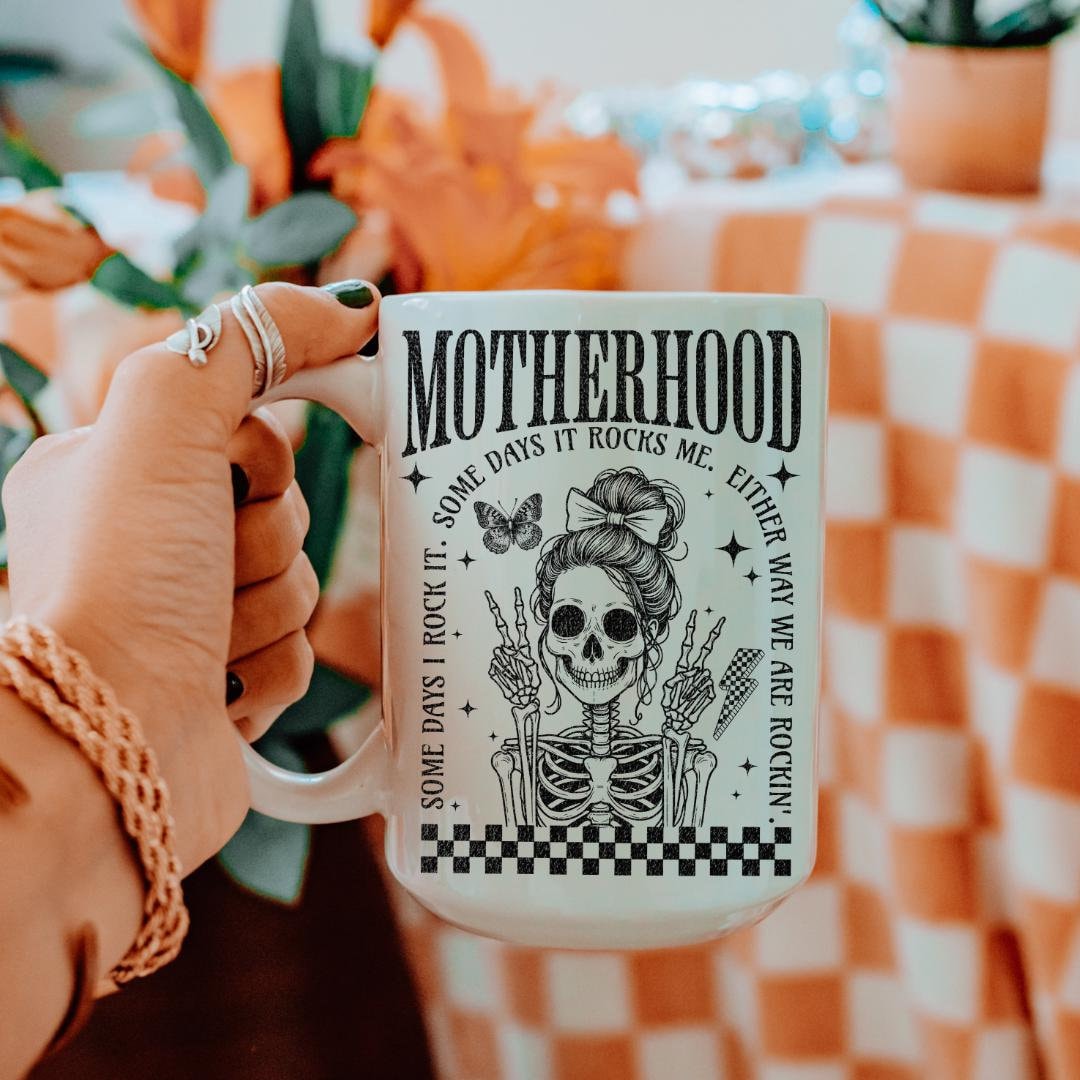 Die Mutterschaft Rocker Kaffeetasse ist perfekt für die rockende Mama in deinem Leben! Das Skel...