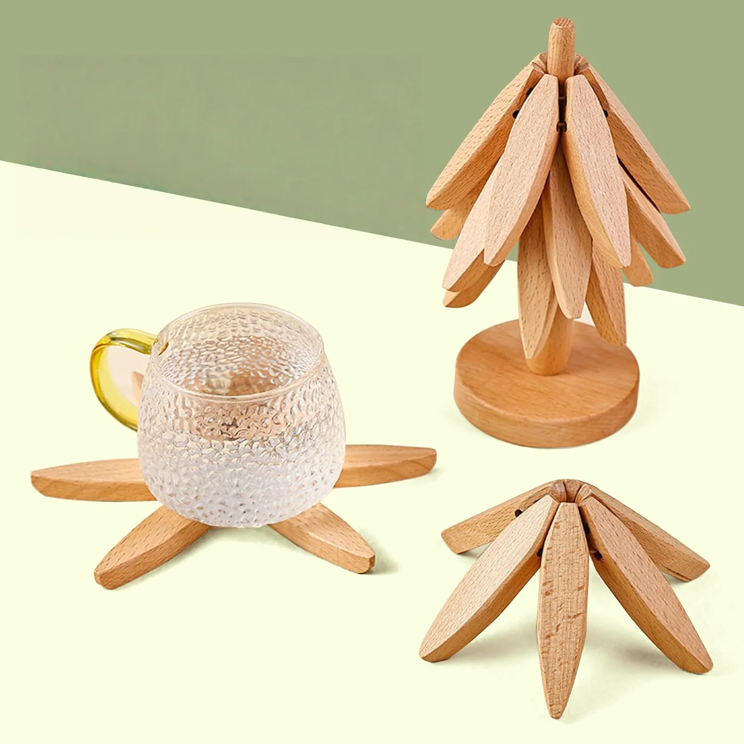 Faltbares Untersetzer-Set aus Holz in Küchenbaumform, wärmeisolierendes Pad für hei&s...