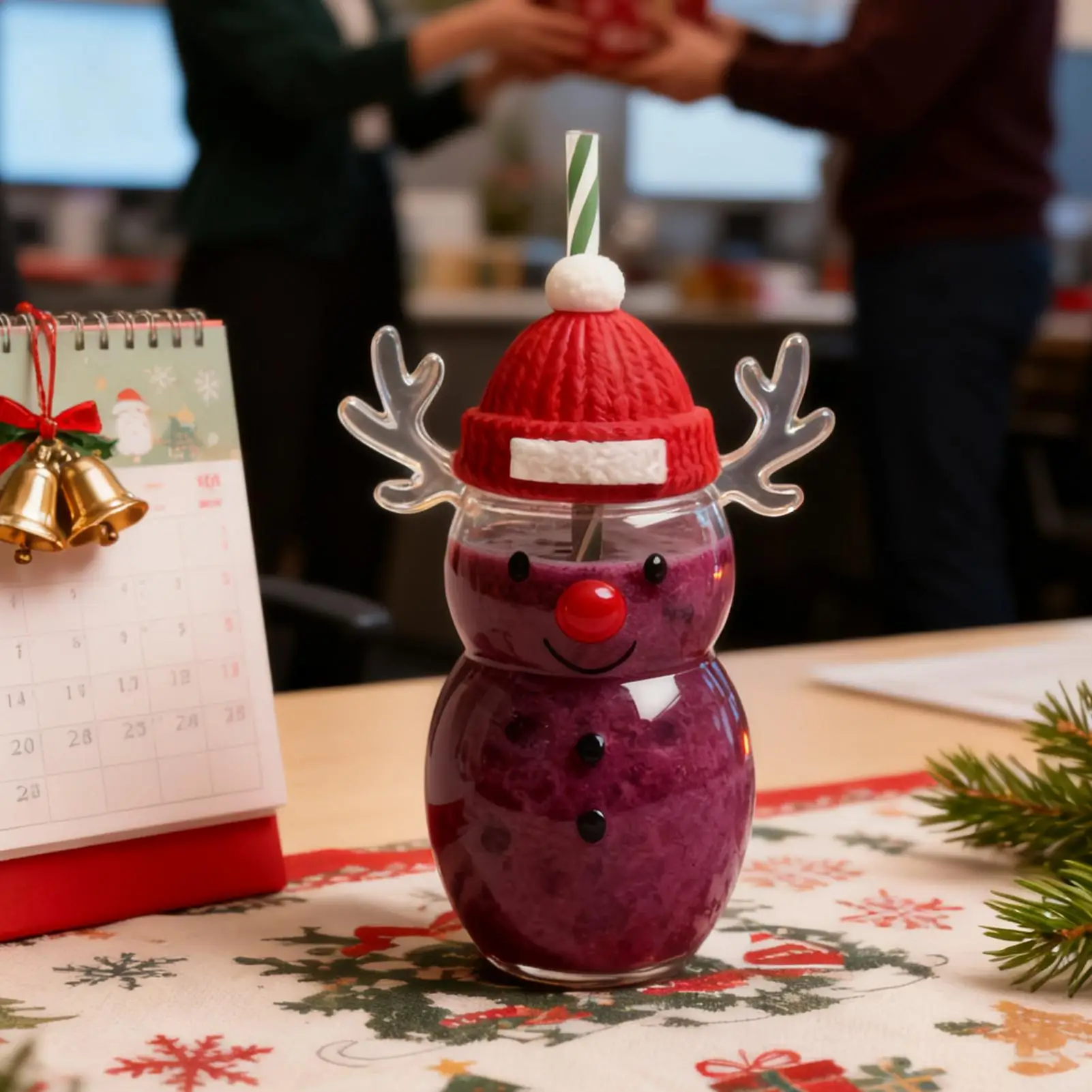 Weihnachtstasse, weihnachtlicher Schneemann-förmiger süßer Becher mit Strohhalm, 20-...