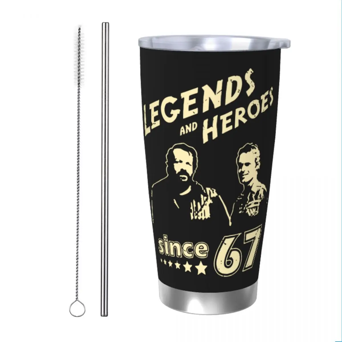 Bud Spencer Legends Hero Tumbler, vakuumisoliert, Terence Hill Kaffeetassen mit Deckel, Strohhalm, B...