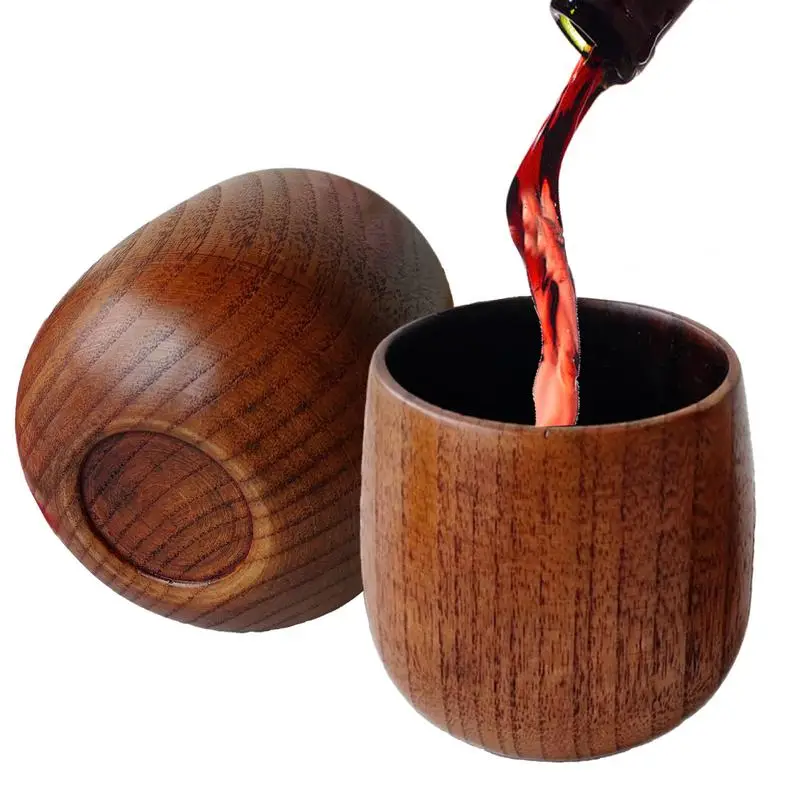 2 Stück handgefertigte hölzerne Whiskyglas-Teetasse im ja...