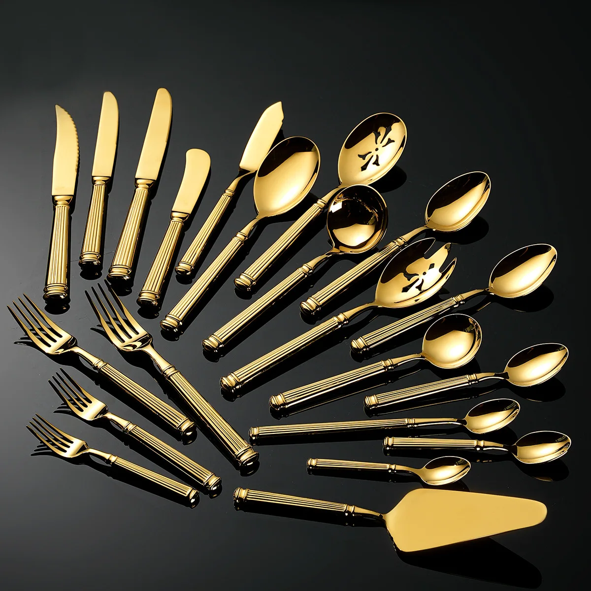 Vergoldetes römisches Besteckset aus Edelstahl 304, luxuriöses komplettes Küchengesch...