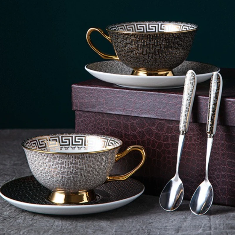 Knochen-Kaffeetassen-Set, Keramik, klassisches Gitter, Becher, Kaffeegeschirr-Sets mit Geschenkbox, ...