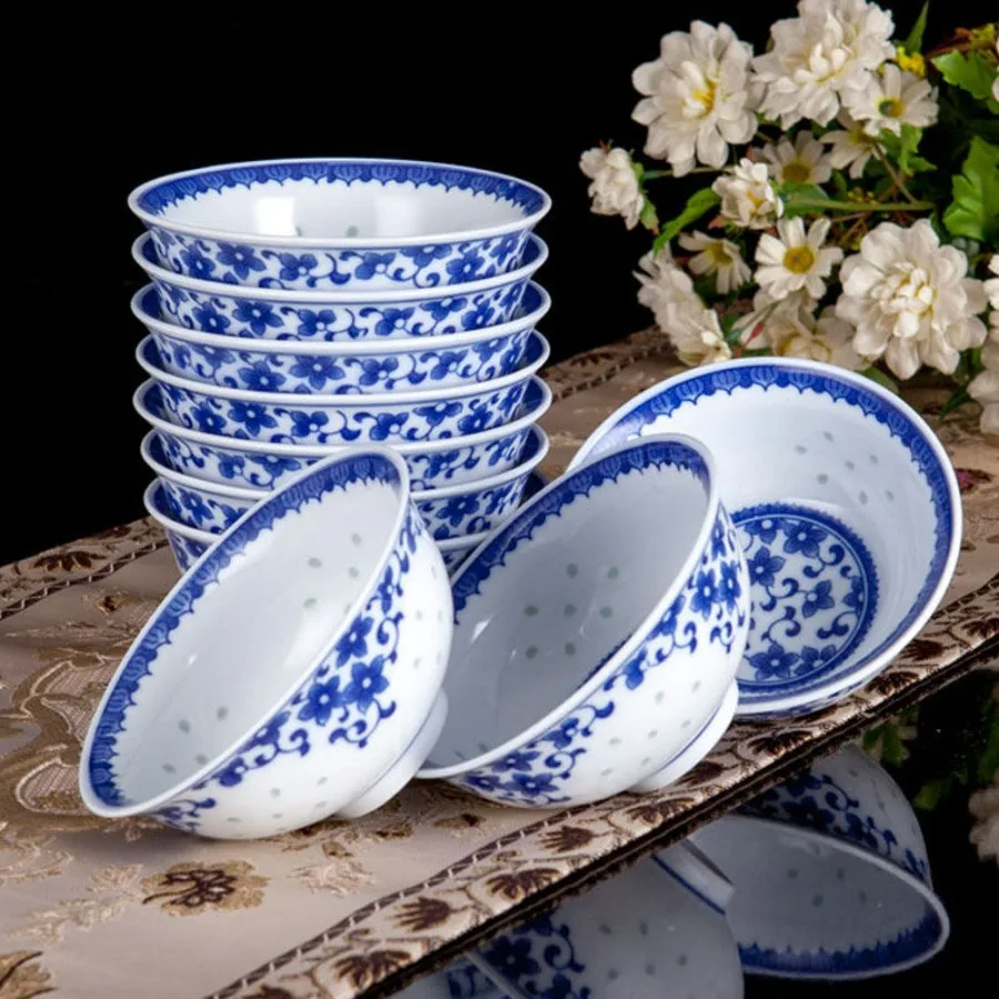 Jingdezhen Keramik-Reisschüssel, exquisites Blumenmuster, blau...