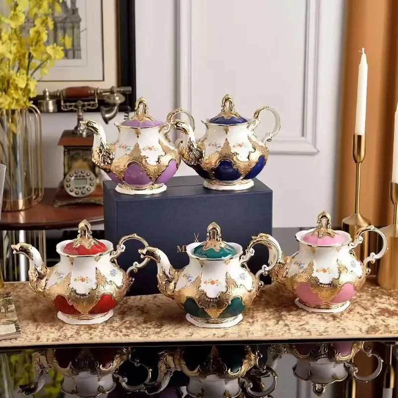 Große Teekanne aus Bone China, Kaffeekanne, handbemalte, goldbemalte Geschenkbox-Verpackung