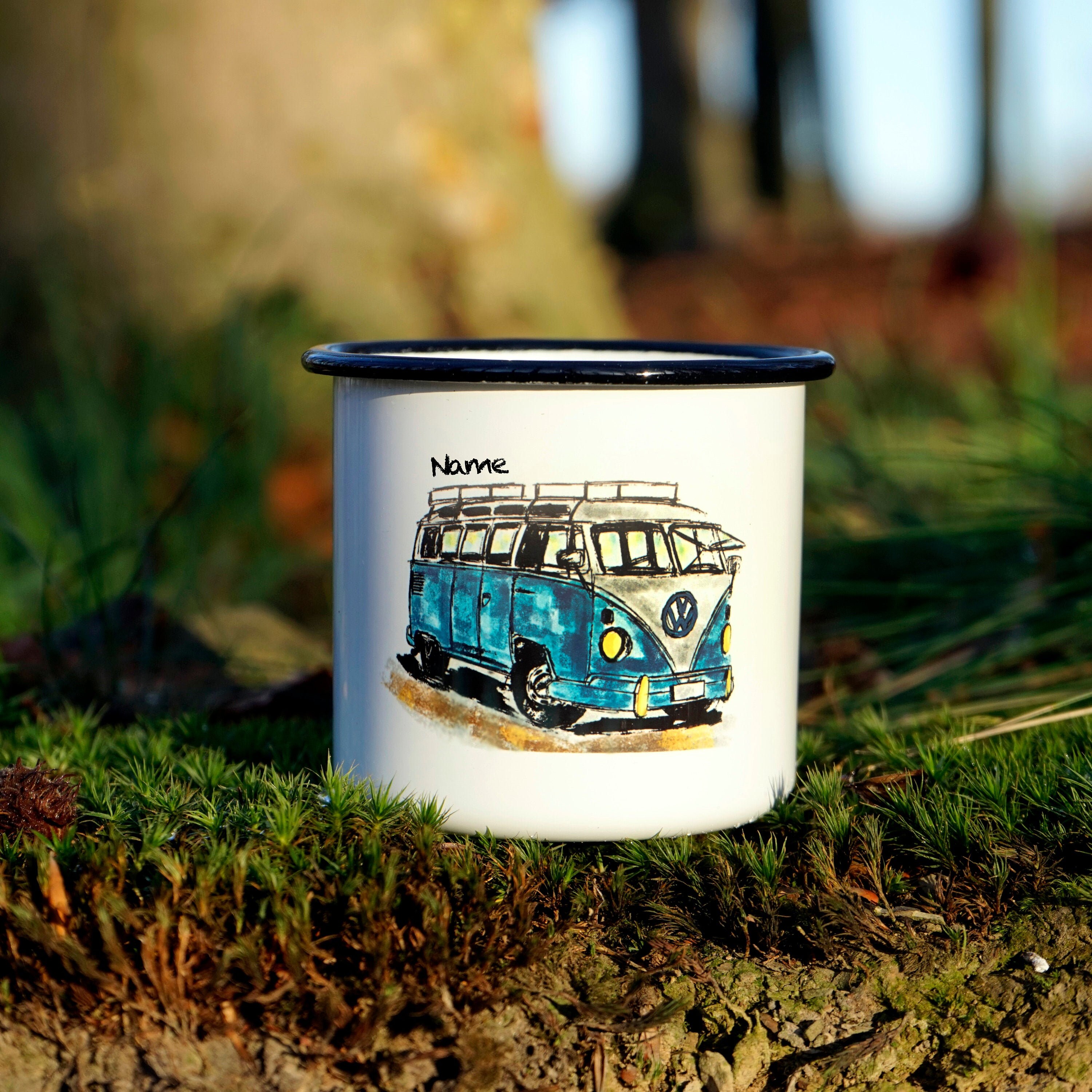 Emaille Tasse | Geschenk | Campingbecher | Bulli | Adventure | Kaff...