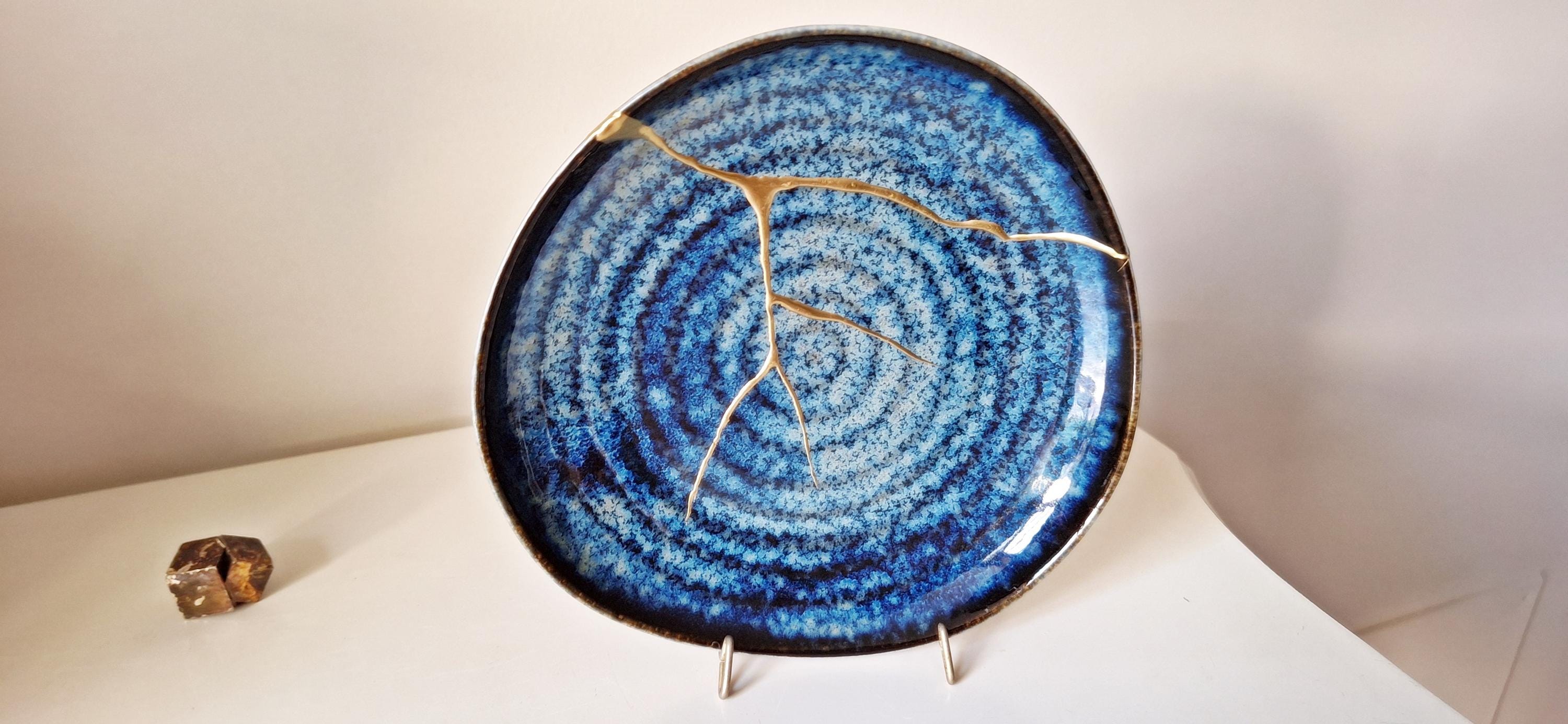 Keramik Kintsugi hergestellt in Japan. Kaputtes und repariertes Stück. Handgemalte und lackiert...