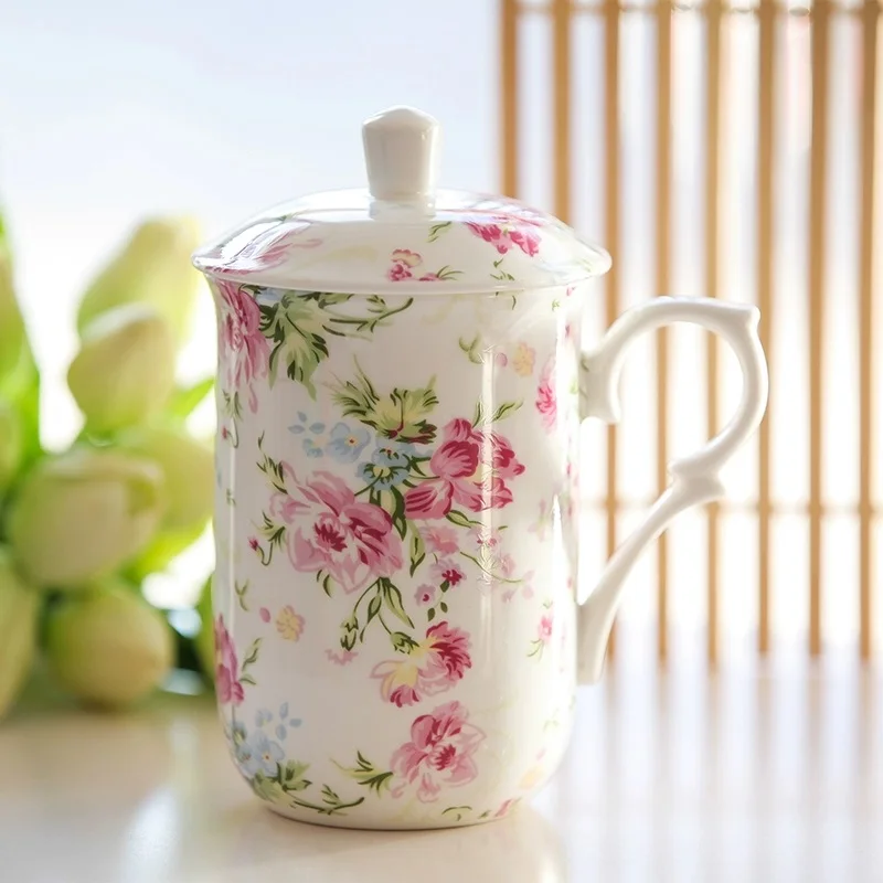 320 ml süße Blumenmalerei Bone China Kaffeetasse, Porzellan-Espressotassen, Thermobecher,...