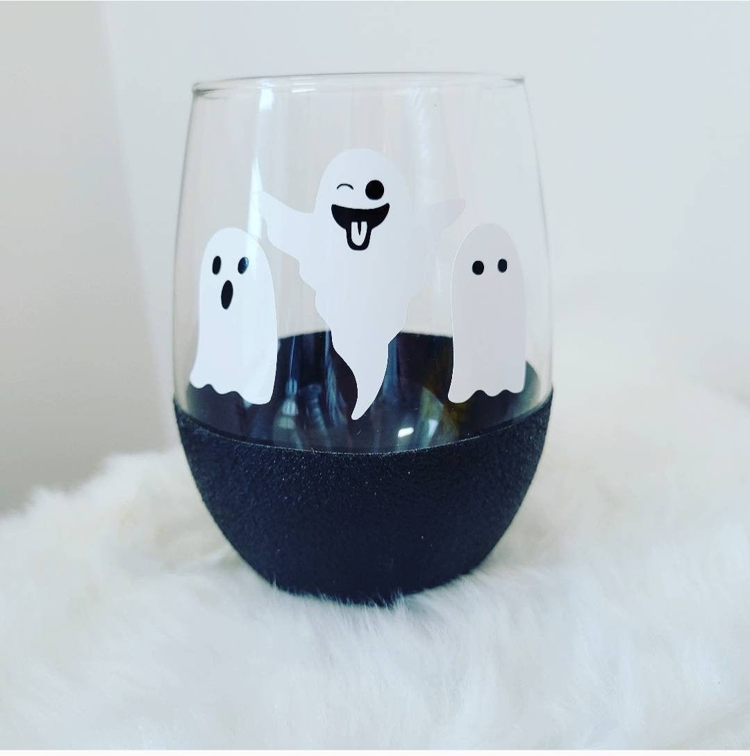 Geist Weinglas - Glitzer getauchtes Weinglas - Halloween Weinglas -...