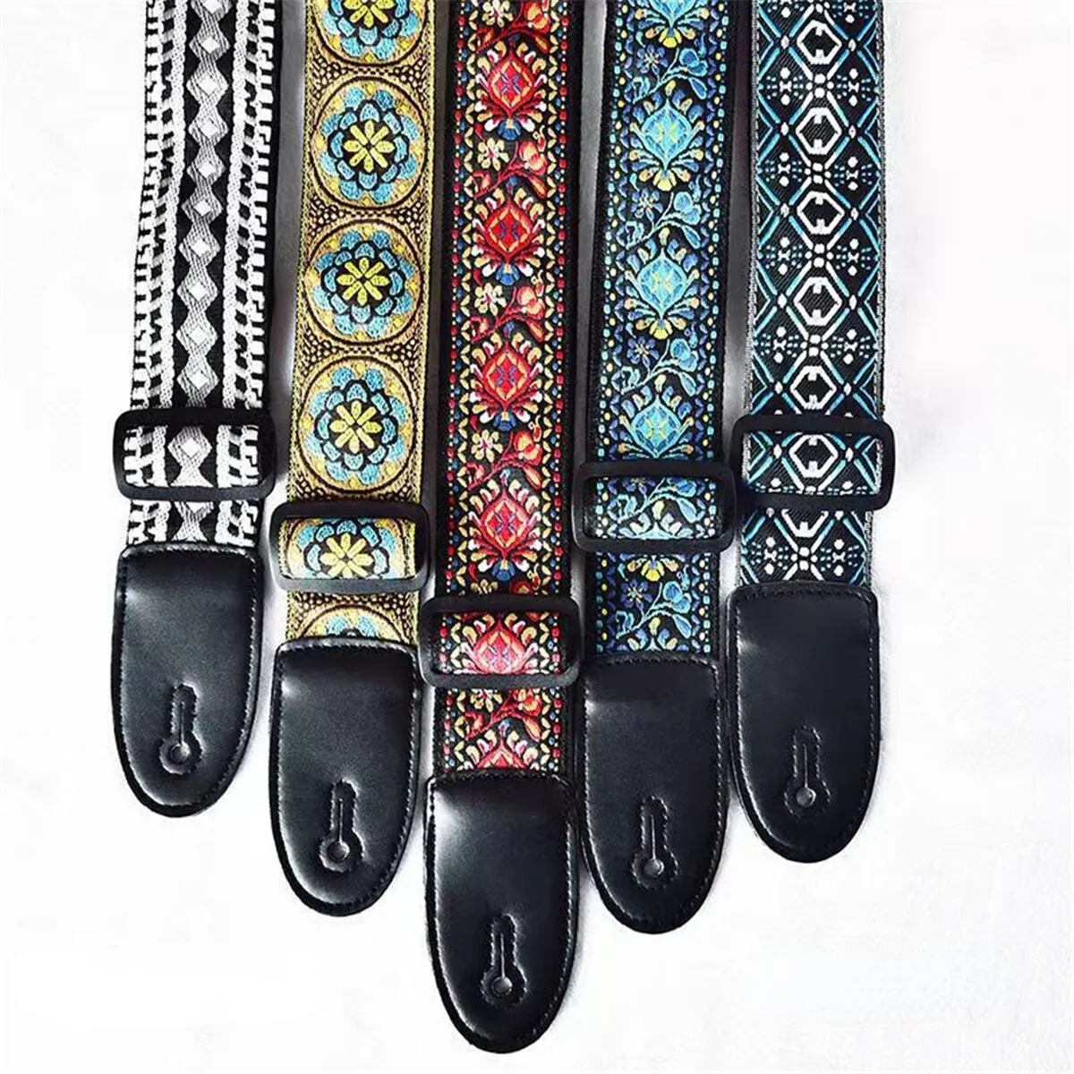 Neue Ethnische Stil Jacquard Leder Gitarre Gurt für Folk Gitarre Elektrische Gitarre Akustische...