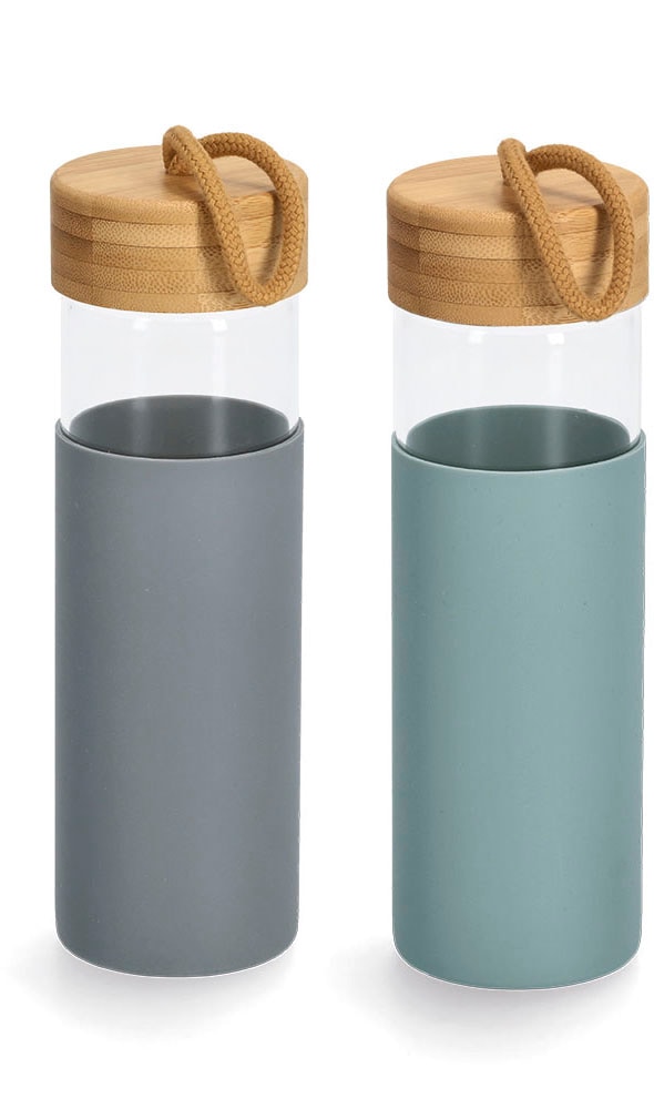 Entdecken Sie unser stilvolles Set aus zwei hochwertigen Glastrinkflaschen, die sowohl Funktionalit&...