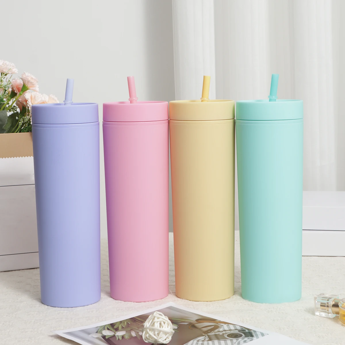 1pc Plastiks troh becher Doppels chicht wasser flaschen Kaffeetasse wieder verwendbarer Hartplastik ...