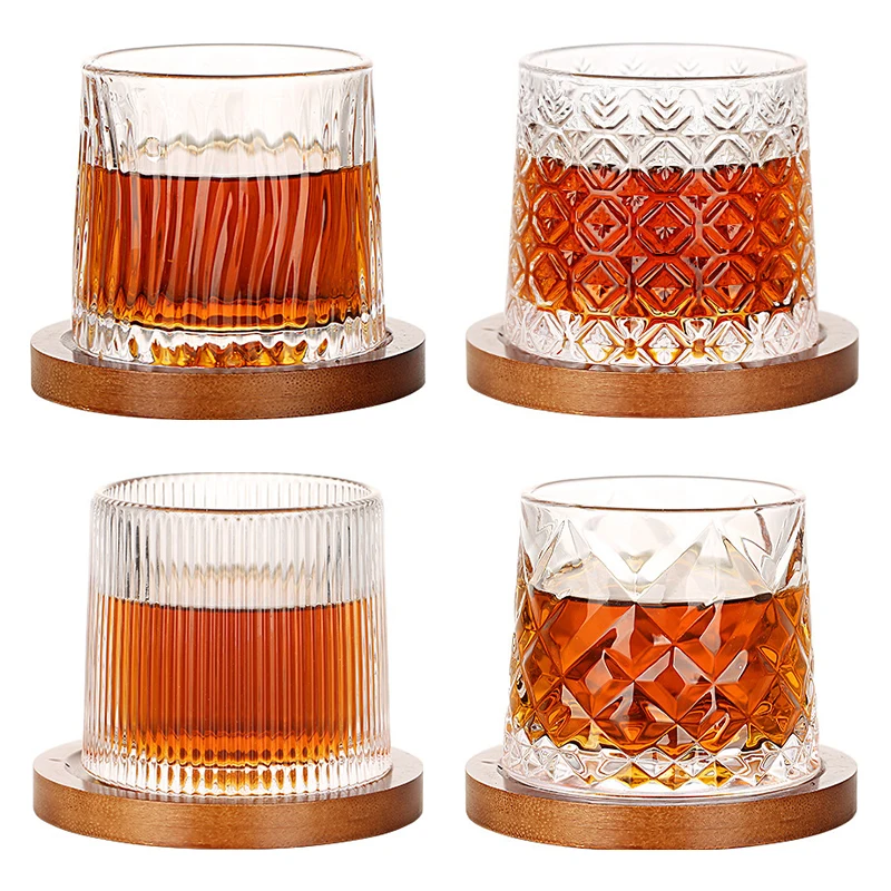 Whiskygläser, rotierendes Whiskyglas mit Glasbasis, 360 Grad drehbar, Kristall-Rum-Glas fü...
