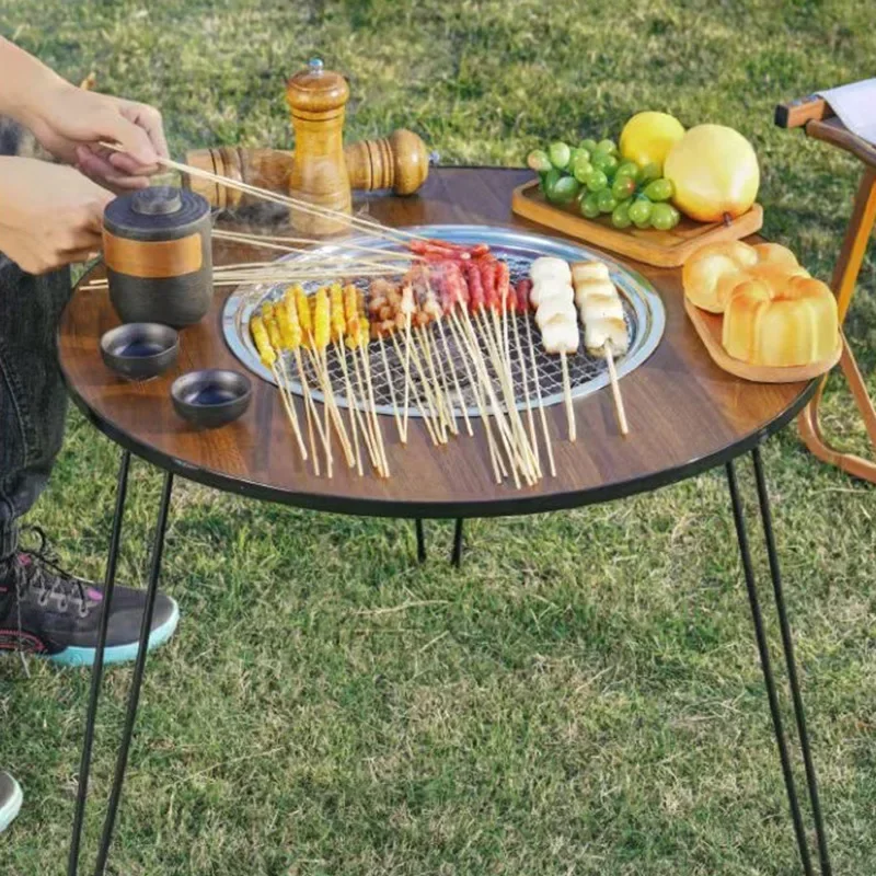 Tragbarer Außen grill Klapp rund tisch Camping Holzkohle Grill tisch Innenhof Herd Tee machen ...