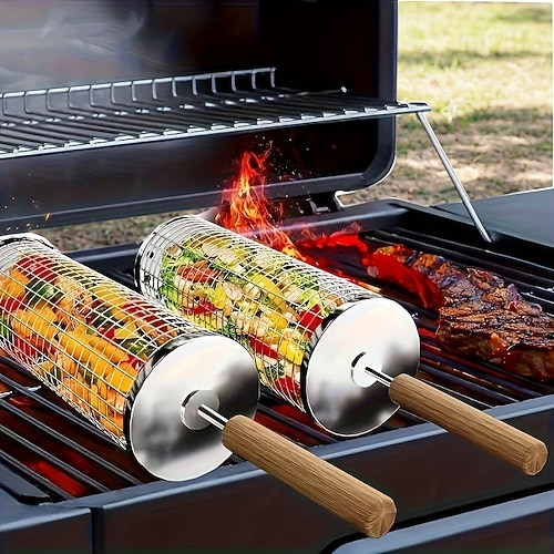 3-teiliges Grillbesteck-Set aus Edelstahl mit Holzgriffen (Grillros...