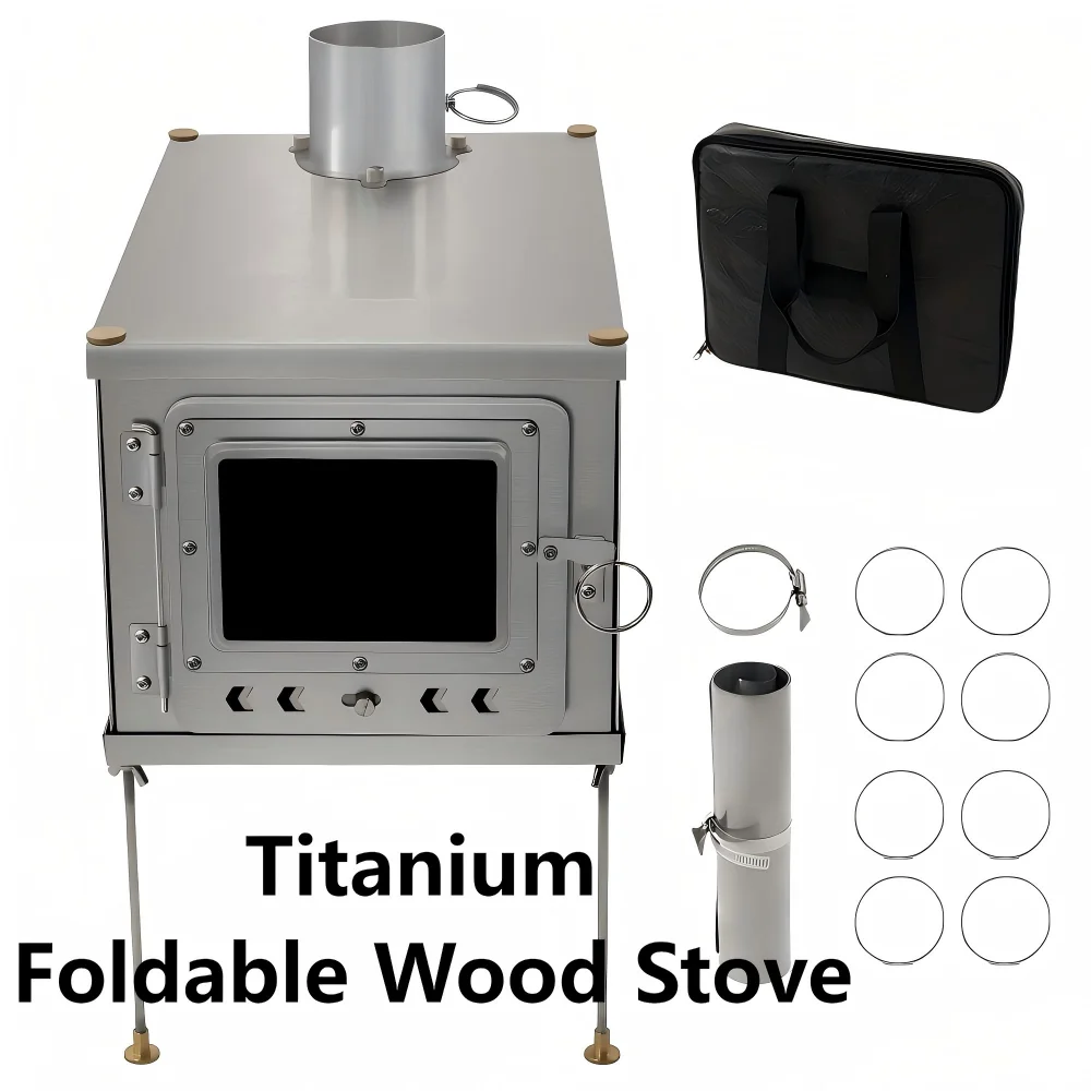 PAKICETUS Titan faltbarer Holzofen, leichte Verbrennung aus Titanlegierung, langlebig, tragbar, Holz...