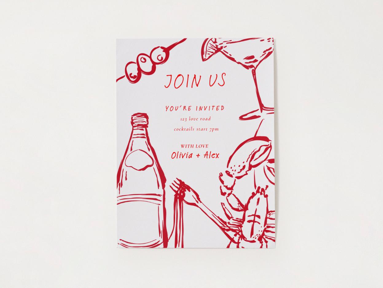 "Eine Partyeinladung mit Biss. Diese handillustrierte Hummer- und Cocktail-Einladung stimmt f&u...