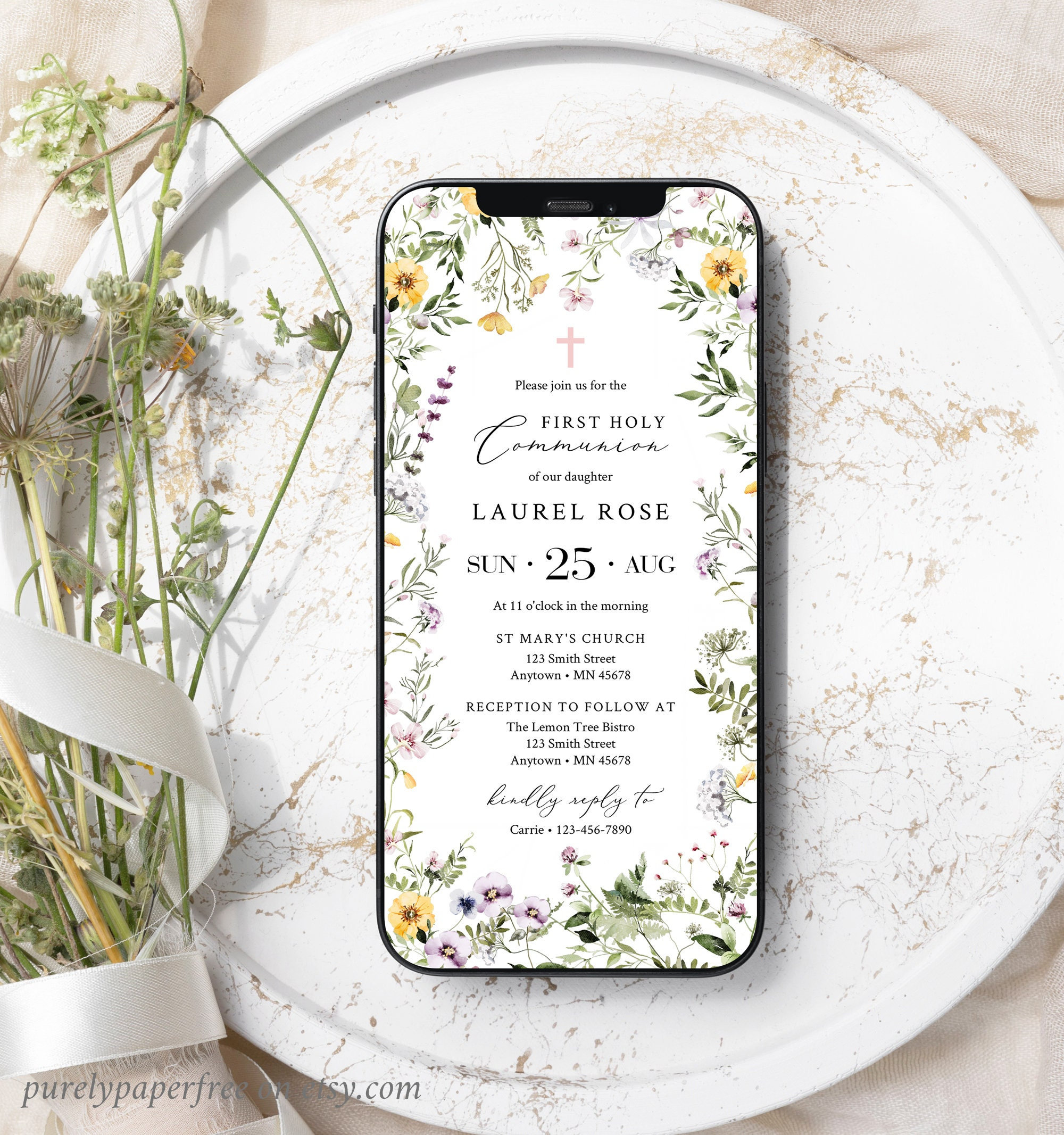 Wildblume Erstkommunion Evite, Wildblume Digitale Einladung Kommuni...