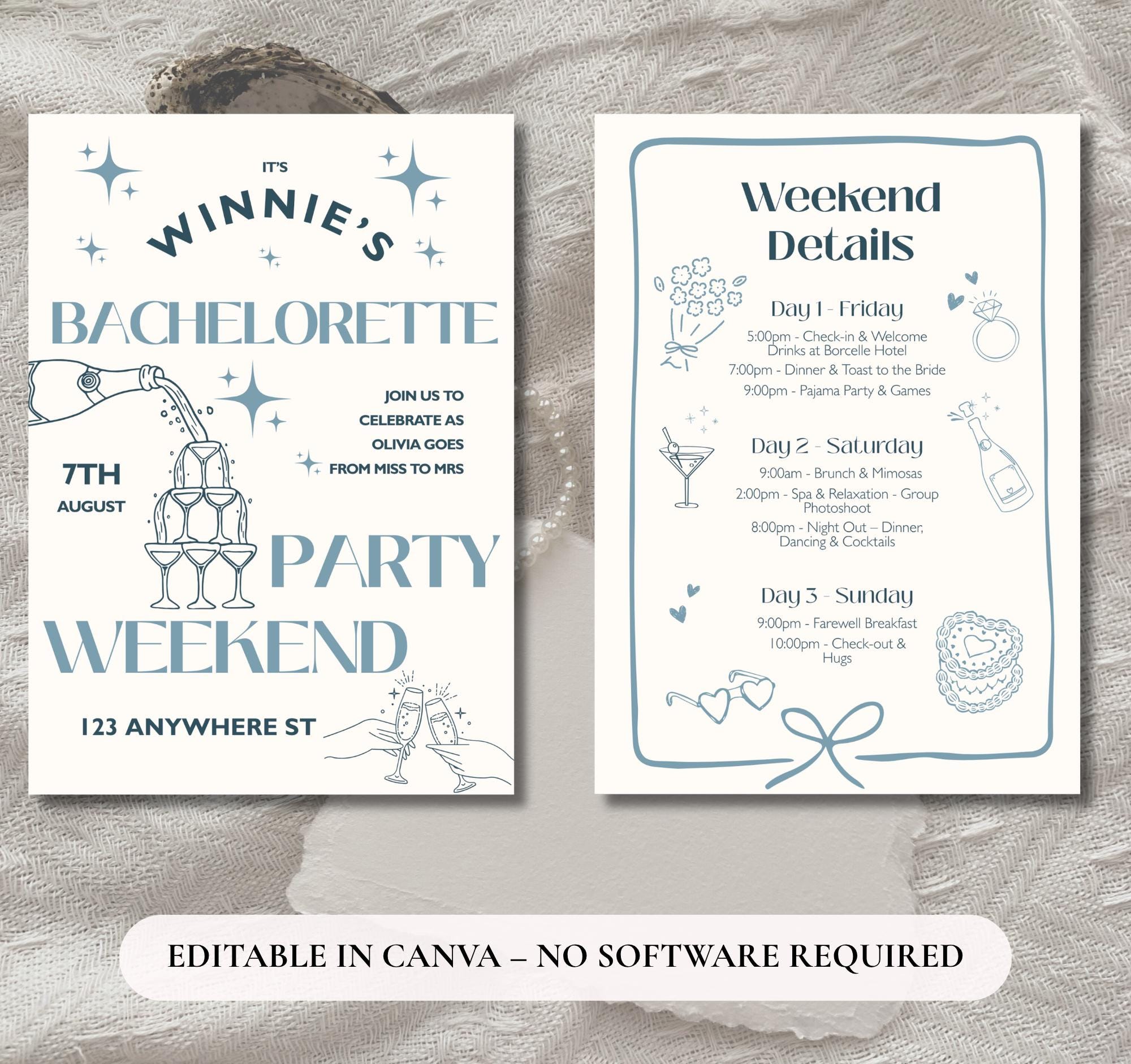 Blau Bachelorette Einladung Vorlage | Bearbeitbar Canva Einladen &a...