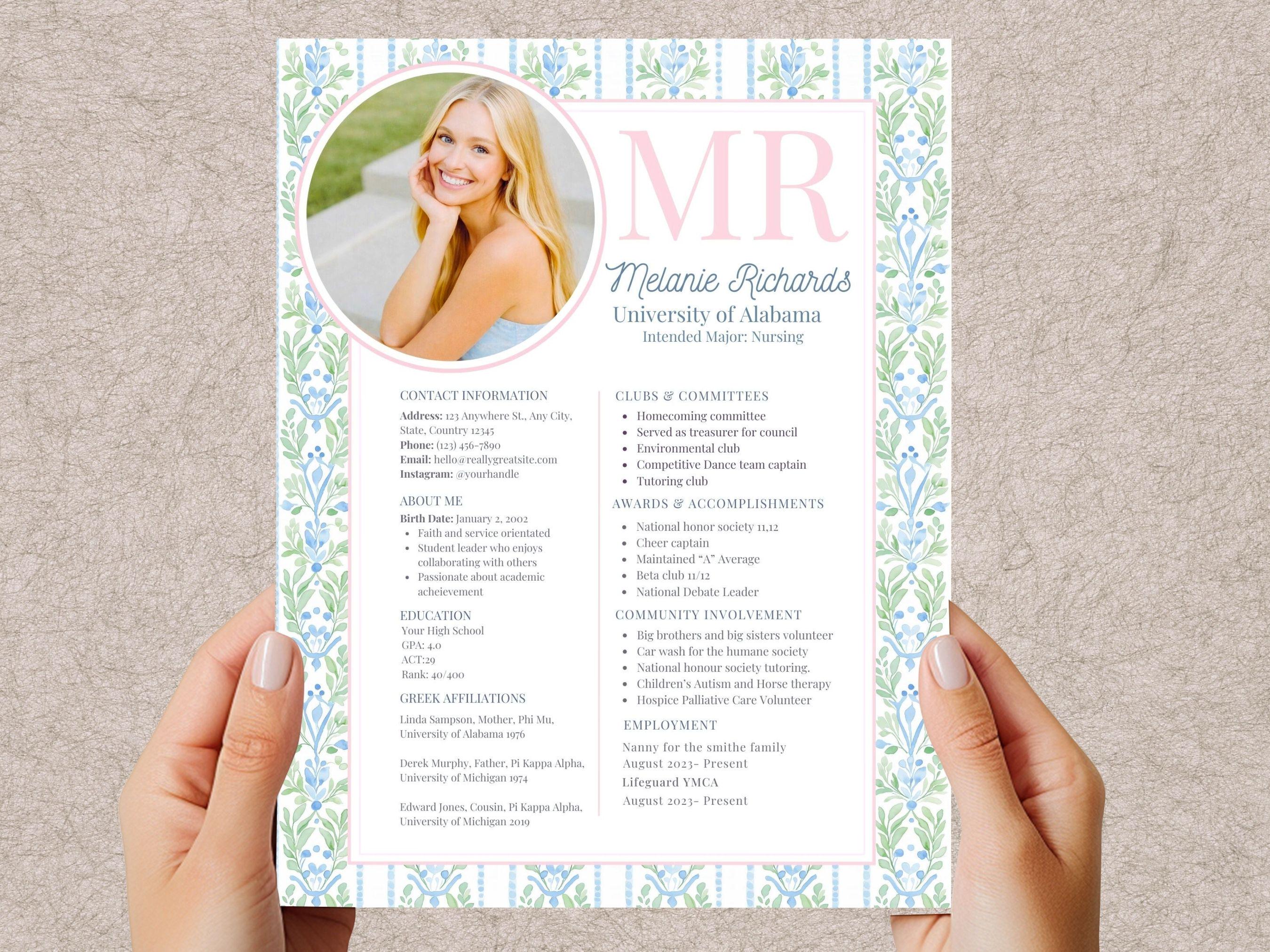 Sorority Lebenslauf Vorlage mit Foto, Rush Lebenslauf Vorlage, PNM ...