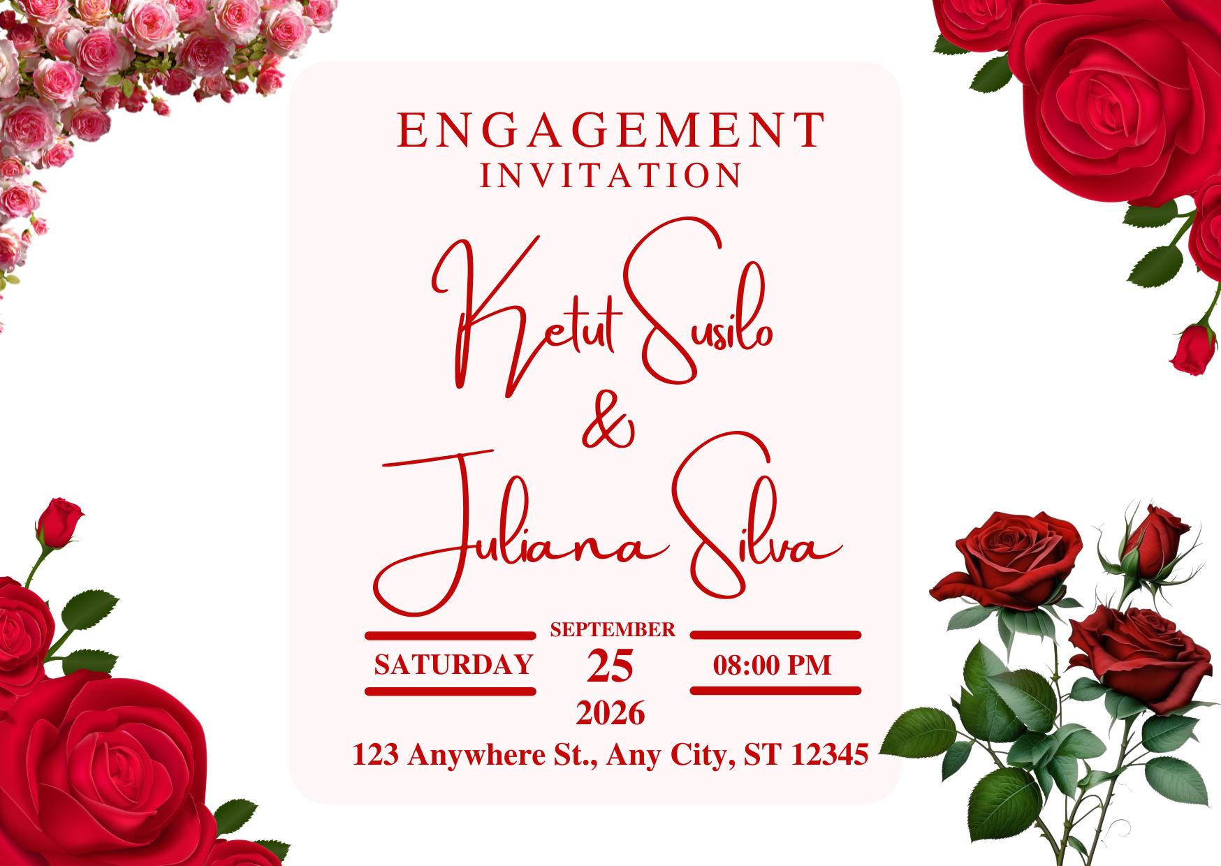 "Verlobungsfeier Einladung Vorlage | Bearbeitbar Rote Rose Can...