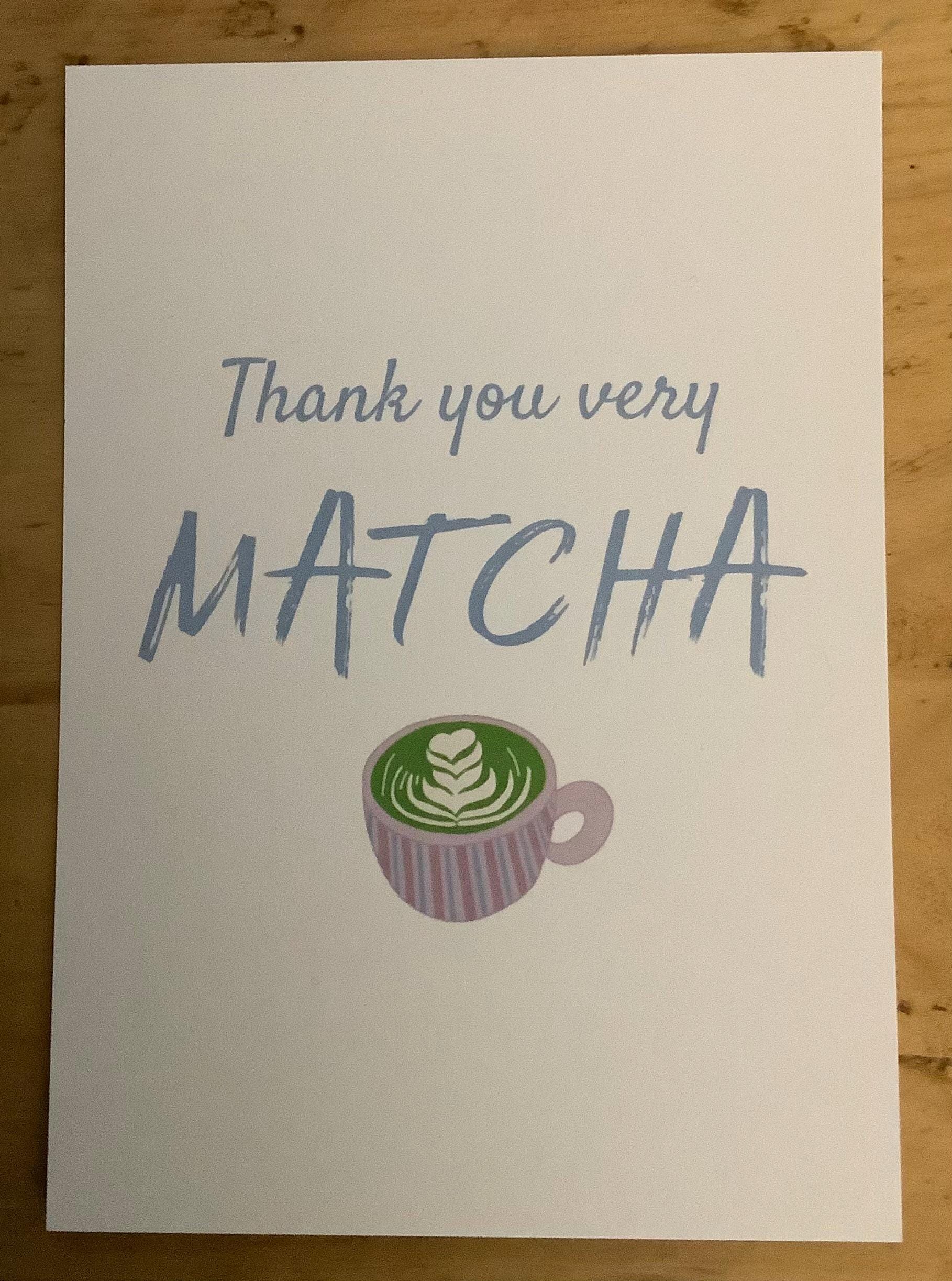"Liebevoll selbst gestaltete Postkarte/Kunstkarte A6 „Thank you very Matcha.\" Die R...