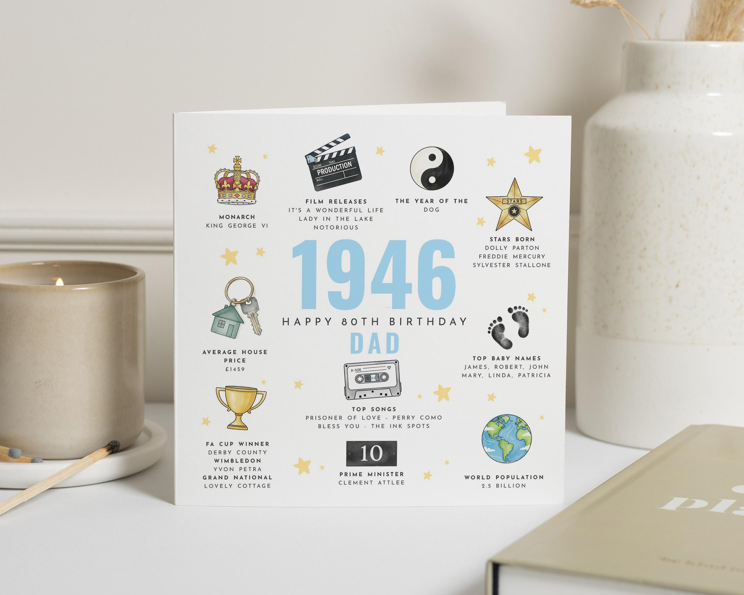 1946 80er Geburtstagskarte für Papa, 80er Geburtstagskarte, Pa...