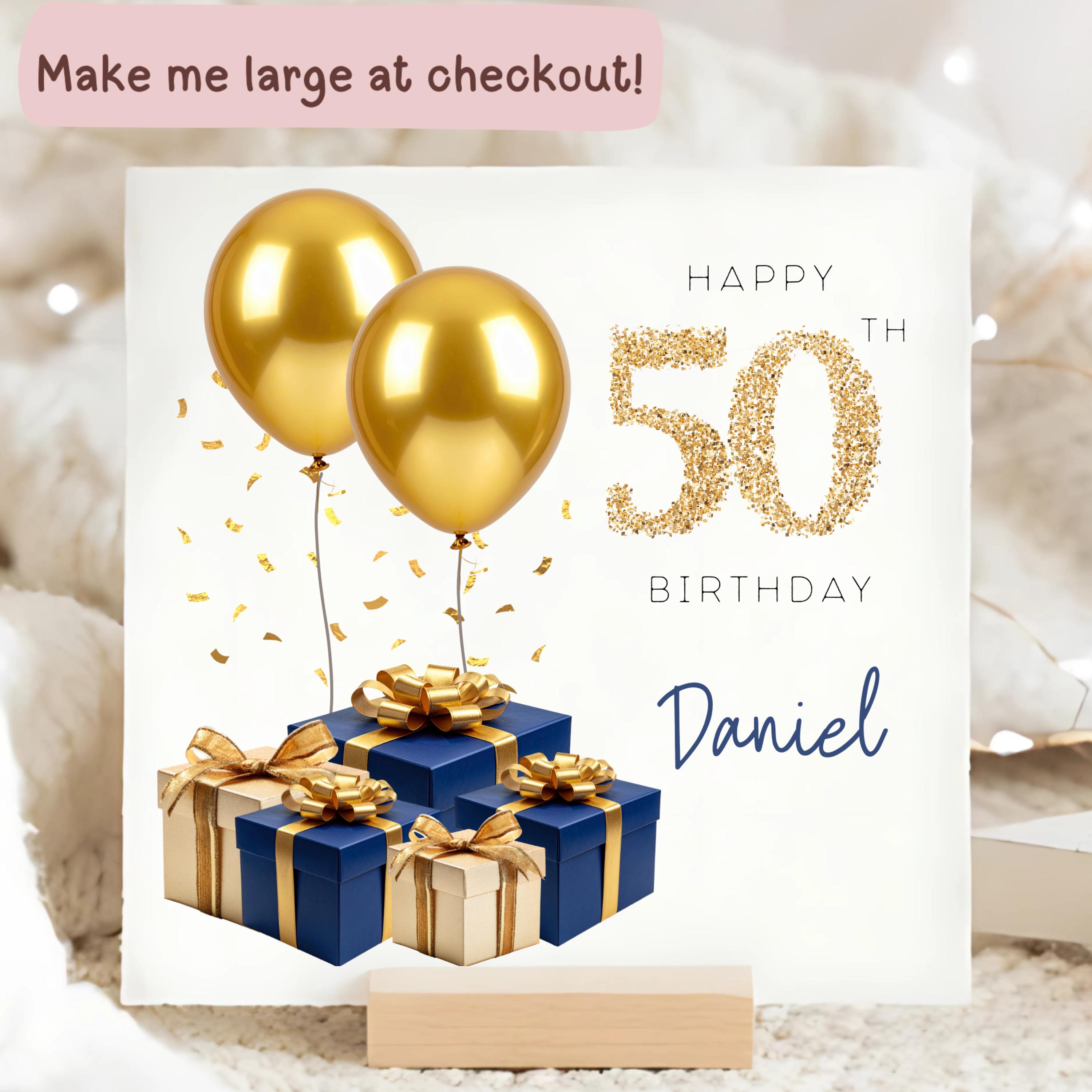 50. Geburtstag Blue & Gold Karte, personalisierte 50 Geburtstag...