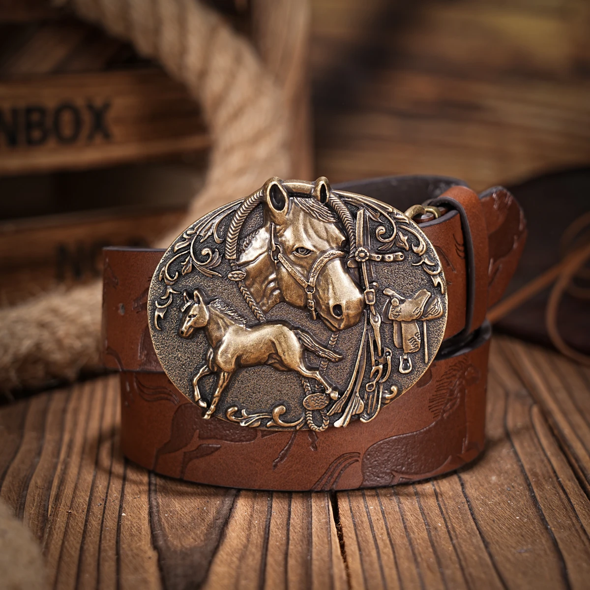Herren- und Damen-Western-Cowboy-PU-Ledergürtel – Vintage-Pferdegürtel mit floraler ...