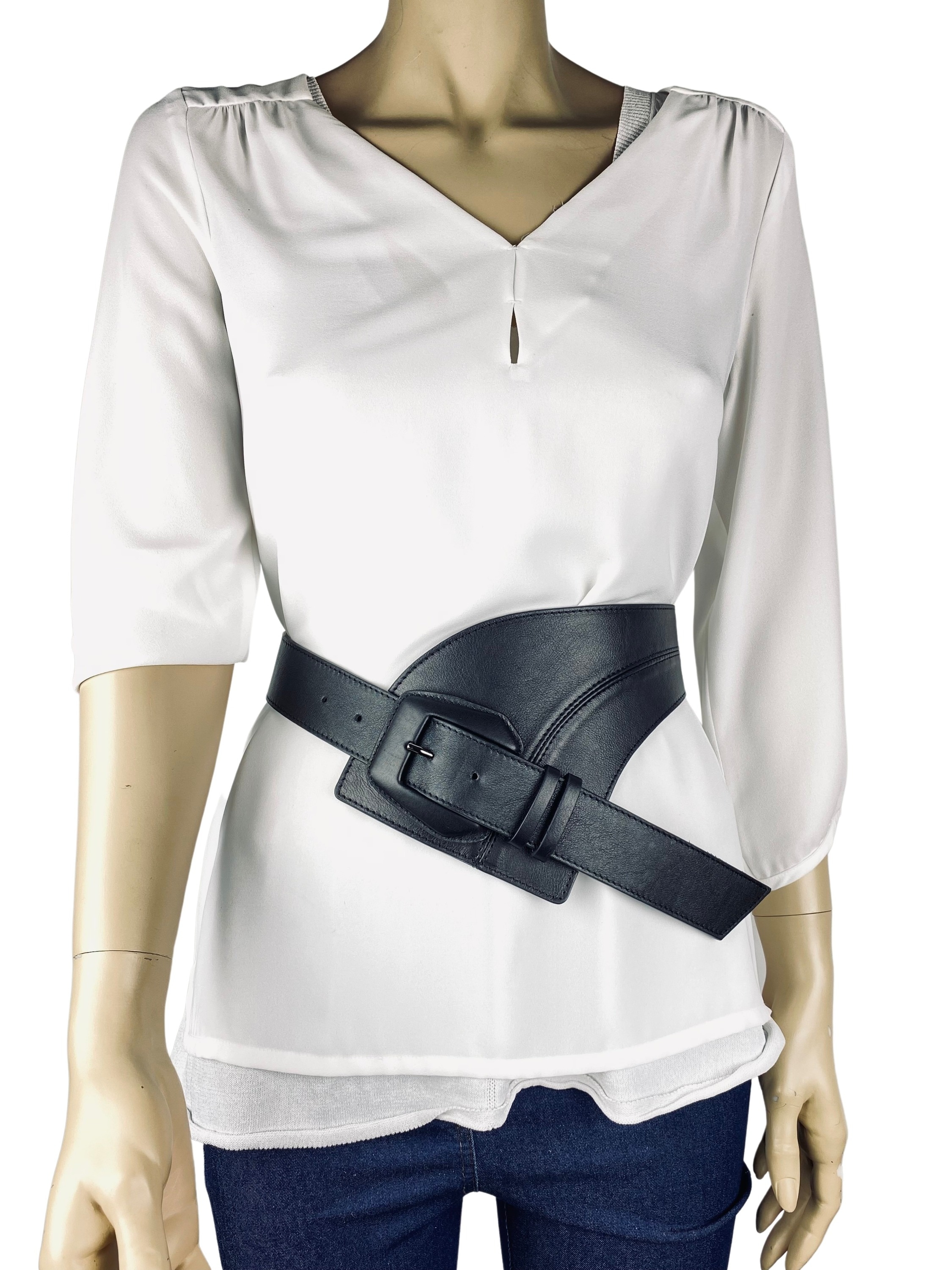 Außergewöhnlicher Echt Leder Formengürtel, modisch geschwungen. Gürtel ist rund...