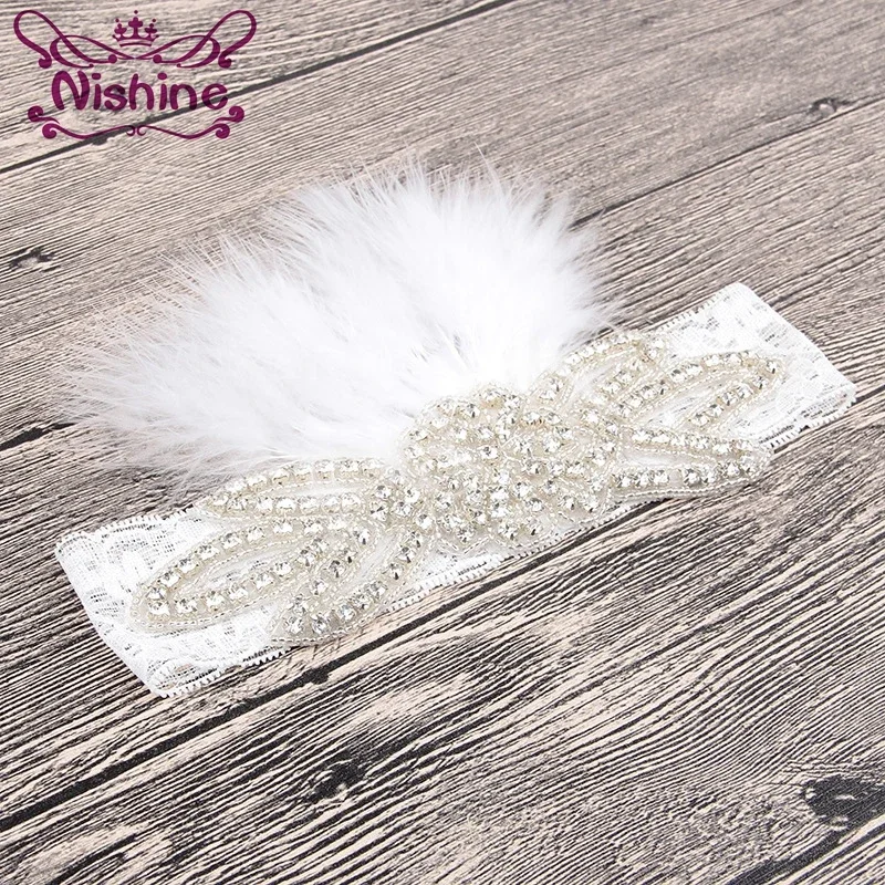 Nishine Mädchen Kinder Blume Strass Elastische Spitze Stirnband Neugeborenen Feder Krone Weiche...